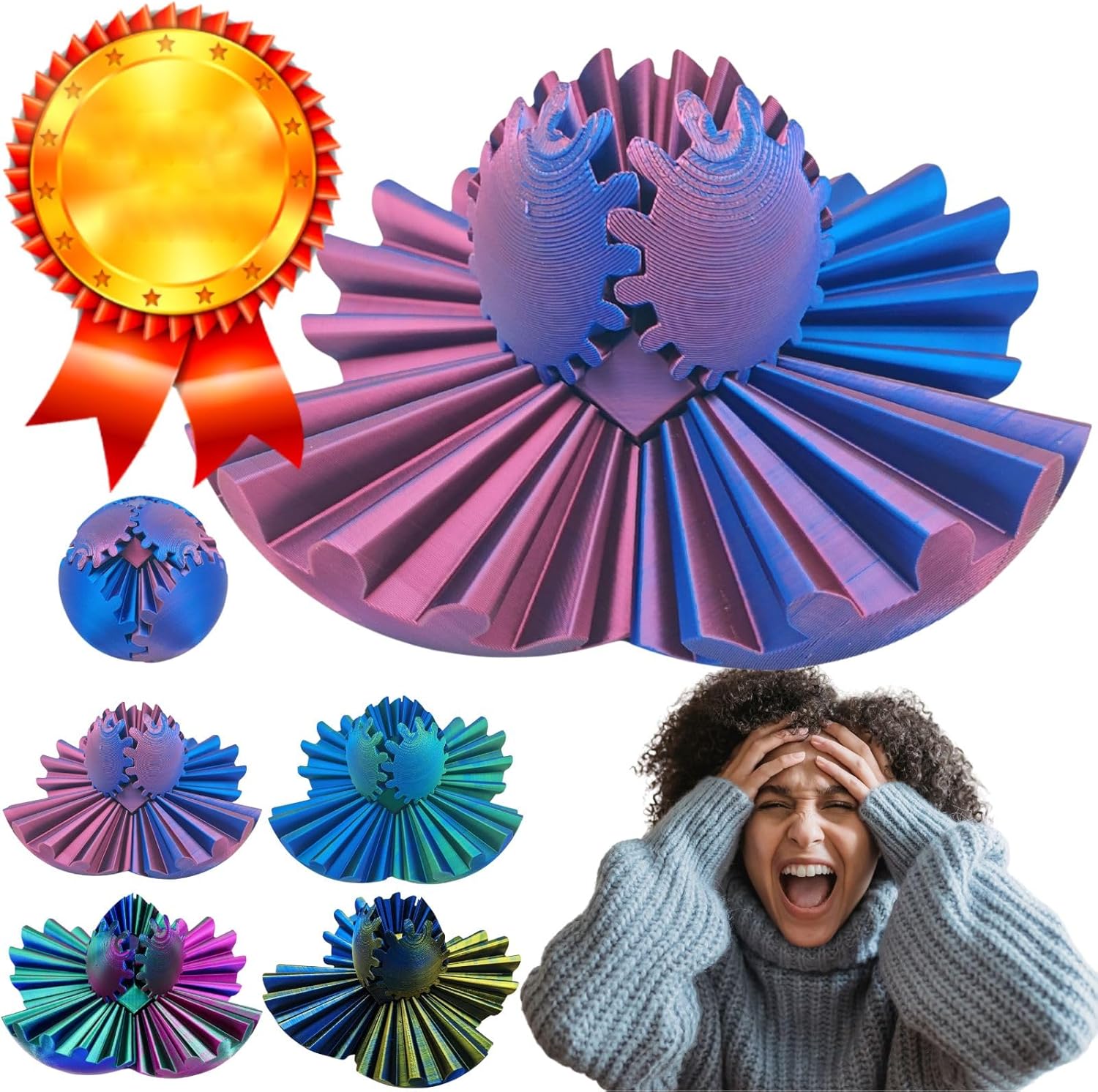 Gear Ball for ADHD 3D Printed Gear Ball Steampunk Whirling Wonder Fidget Toy Gearsphere Gear Ball for Stress and Anxiety Relaxing Fidget Ball Ideal for Sensory Needs and Autism (Laser Red Blue)