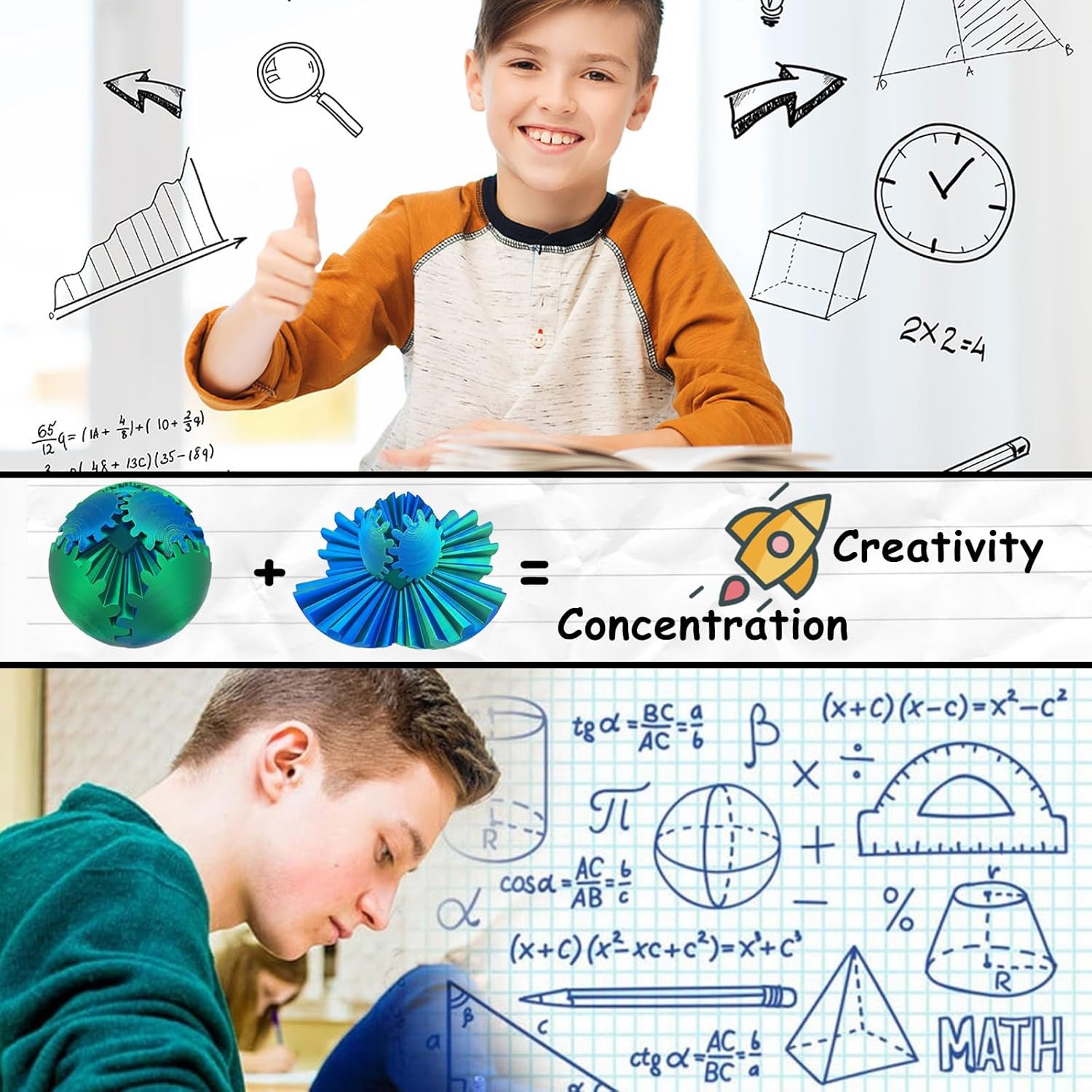 - 3D Printed Gear Ball: Our gear ball is a unique and innovative fidget toy that combines the fun of spinning gears with the stress-relieving benefits of a sphere puzzle. Made from high-quality 3D printed materials, it boasts a smooth surface and durable structure for long-lasting use.