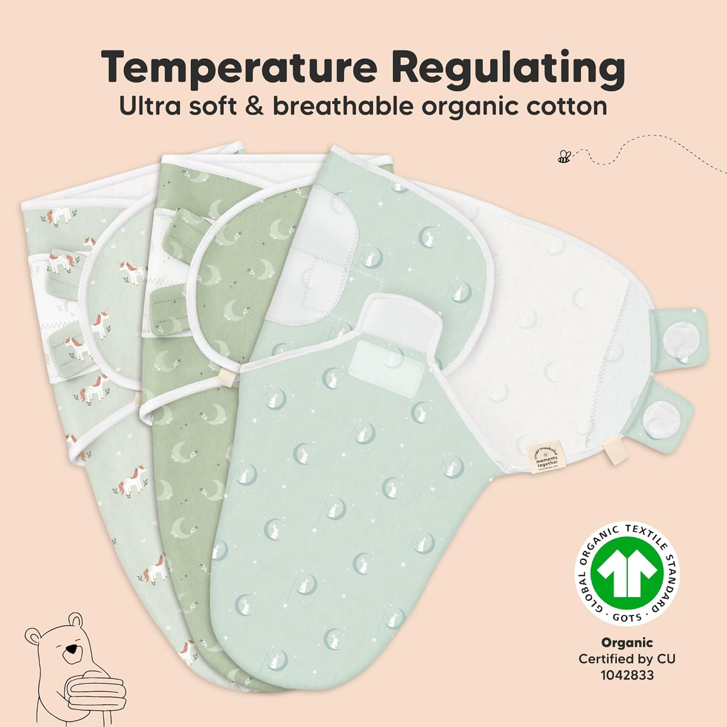 3-Pack Organic Baby Swaddle Sleep Sacks - Swaddles for Newborns, Infant 0-3 Months, Baby Girls, Boys, Soft & Snug Newborn Sleep Sack, Nursery Swaddling Blankets (Lunaris)