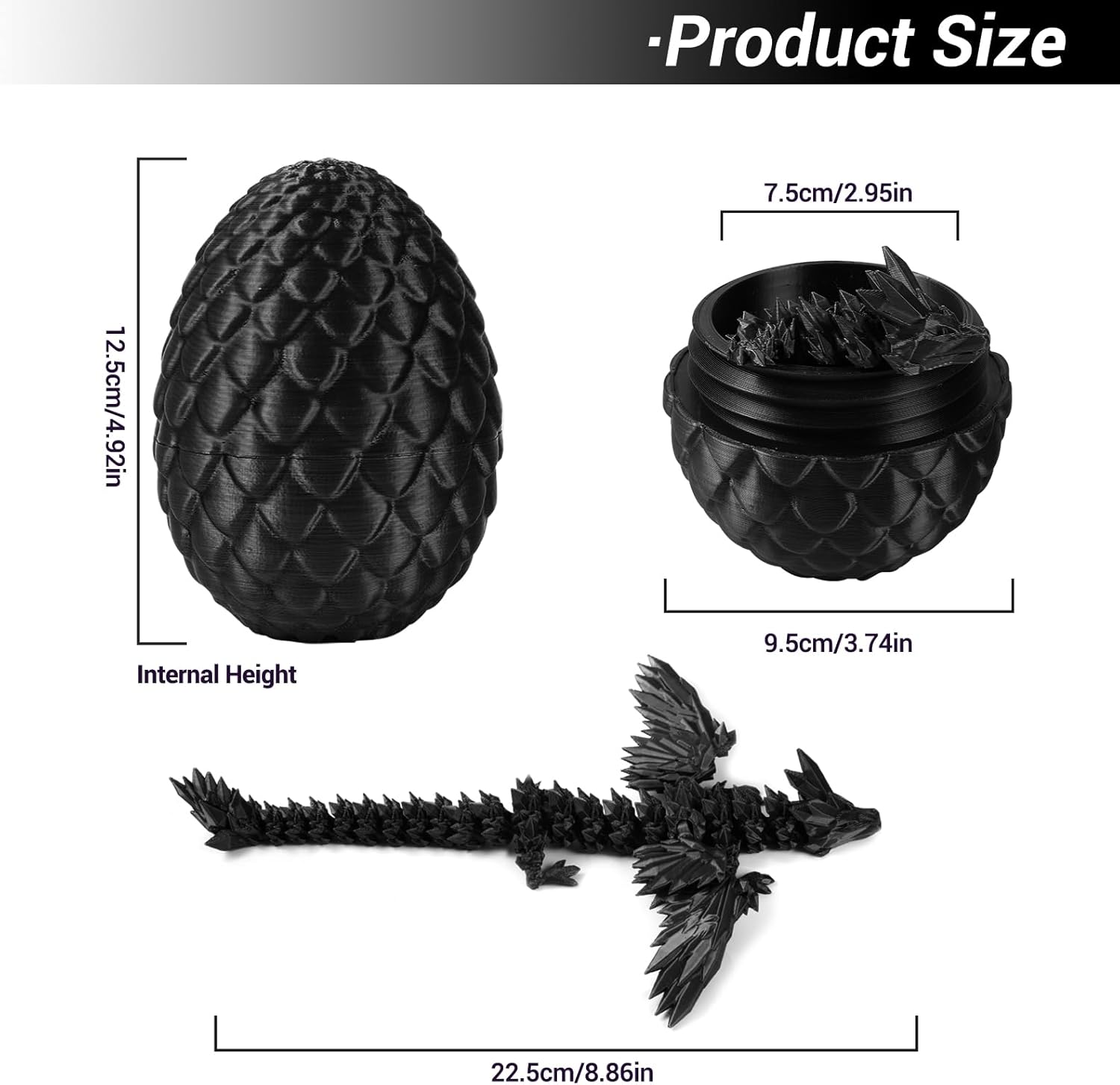 - 🐉【Mystery Dragon Egg】3D dragon eggs with dragon fidget inside includes an articulated dragon with Wings (Length 12") and an matched color egg (3.5"x 3.5"x5").