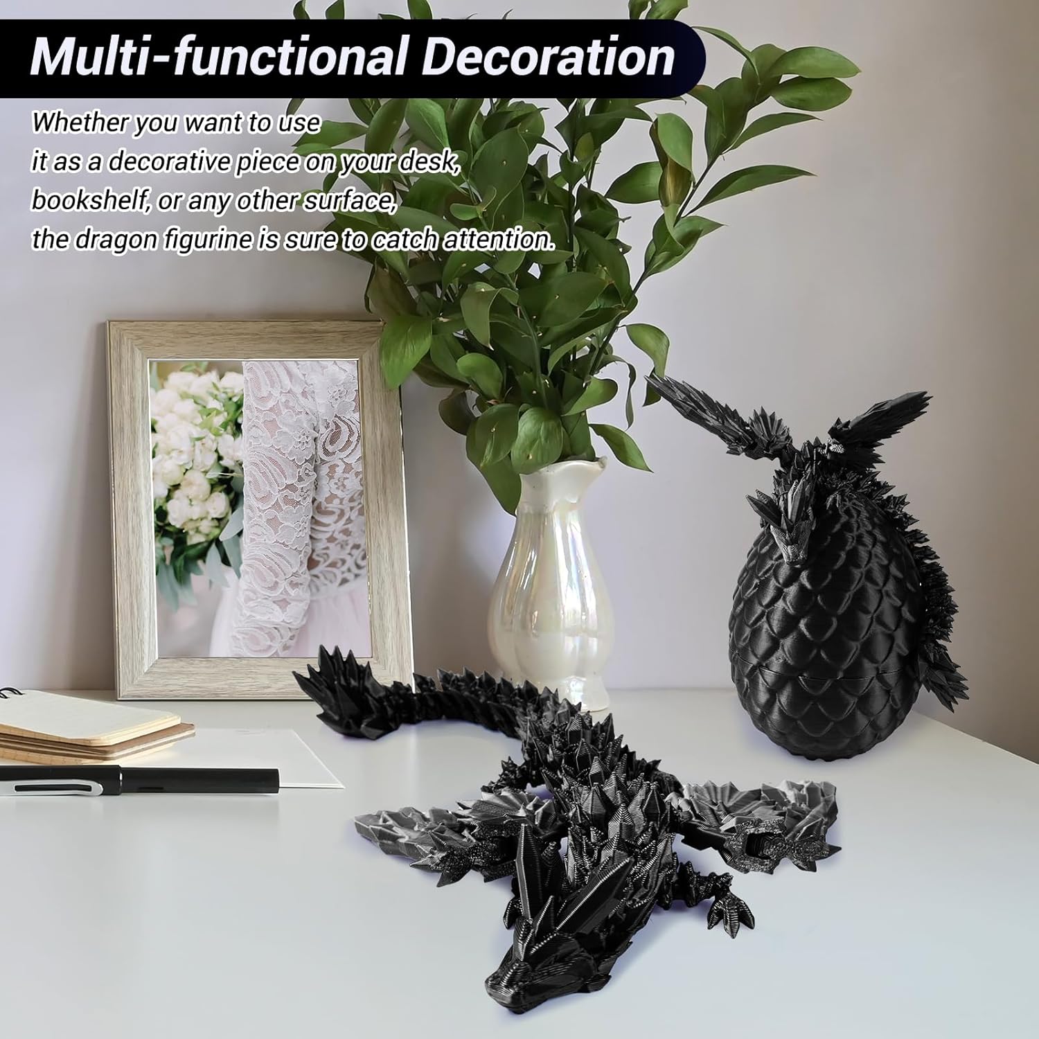 - 🐲【3D Printed Dragon】The Crystal Dragon with Wings statue along with the dragon egg is produced using state-of-the-art 3D printing technology, capable of achieving high precision and intricate detail. This manufacturing method enhances the figurine's authenticity and sophistication, boosting its aesthetic worth.You may see layers of texture that build up on top of the material or slight pull lines, it's normal.