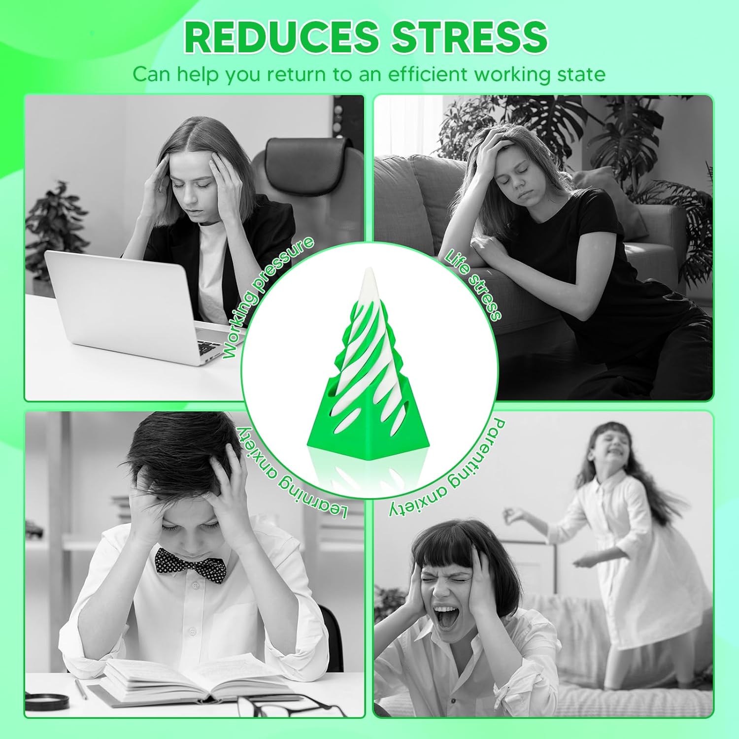 Impossible Pyramid Passthrough Sculpture, 3D Printed Spiral Cone Fidget Toys, Anxiety Relief Pass Through Pyramid Fidget Toy, Stress Relief Desk Toy Adults, Christmas, Birthday Gifts (Green White)