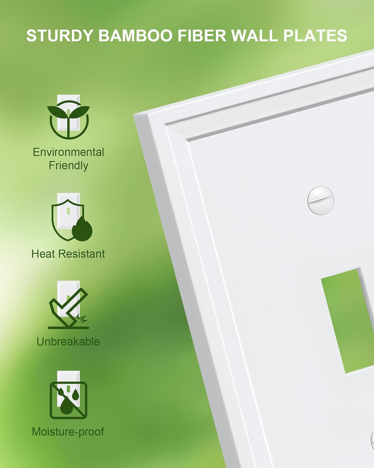 4-Pack Single Toggle Light Switch Covers Wall Plate, Pure White Decorative Switch Plate Covers, 1 Gang Natural Bamboo Fiber Wall Plate, Corrosion Resistant