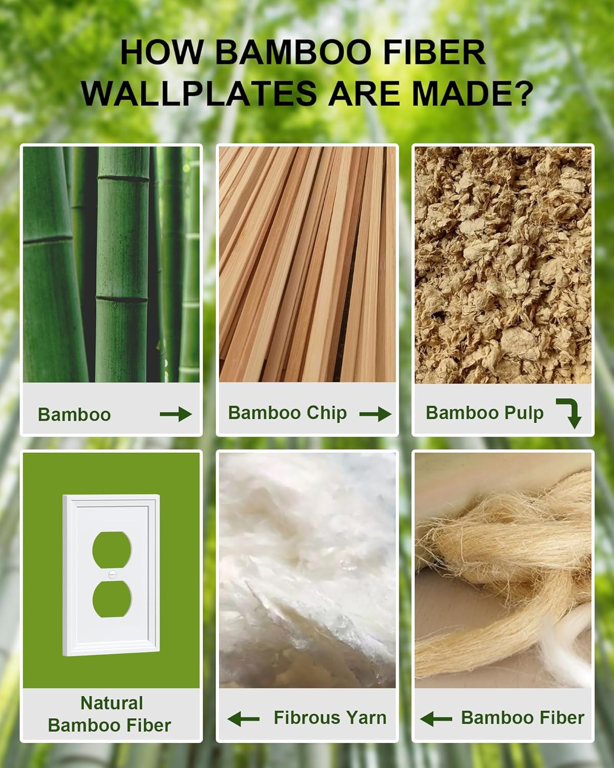 4-Pack Duplex Outlet Cover, Natural Bamboo Fiber Switch Plates and Outlet Covers, White Decorative Wall Plates for Electrical Outlets, 1 Gang Receptacle Cover, Corrosion Resistant