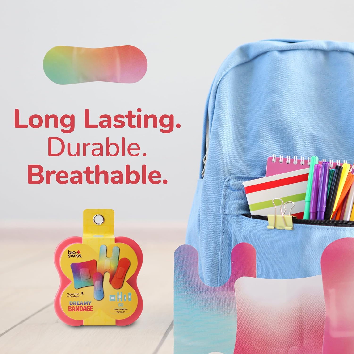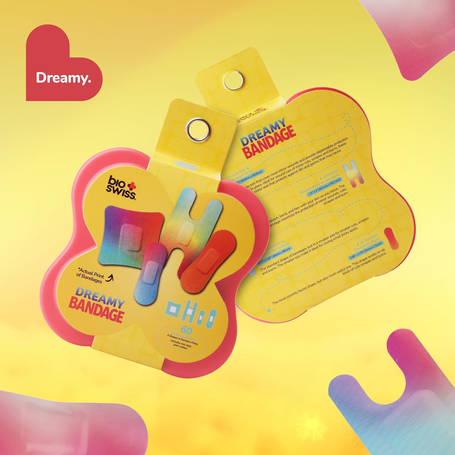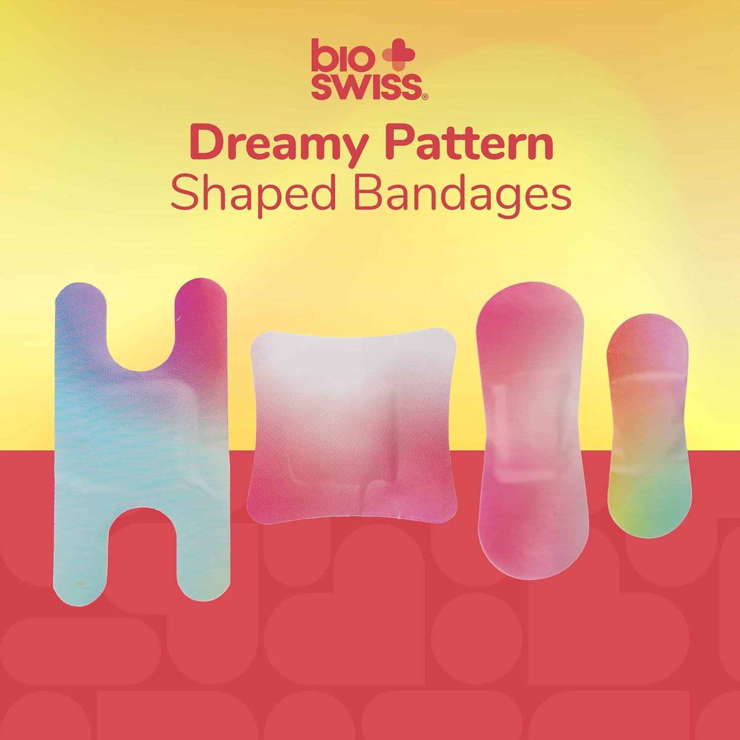 BioSwiss Bandages, Assorted Size Gradient Print Self Adhesive Bandage, Latex Free Sterile Wound Care, First Aid Kit Supplies for Kids and Adults, 60 Count