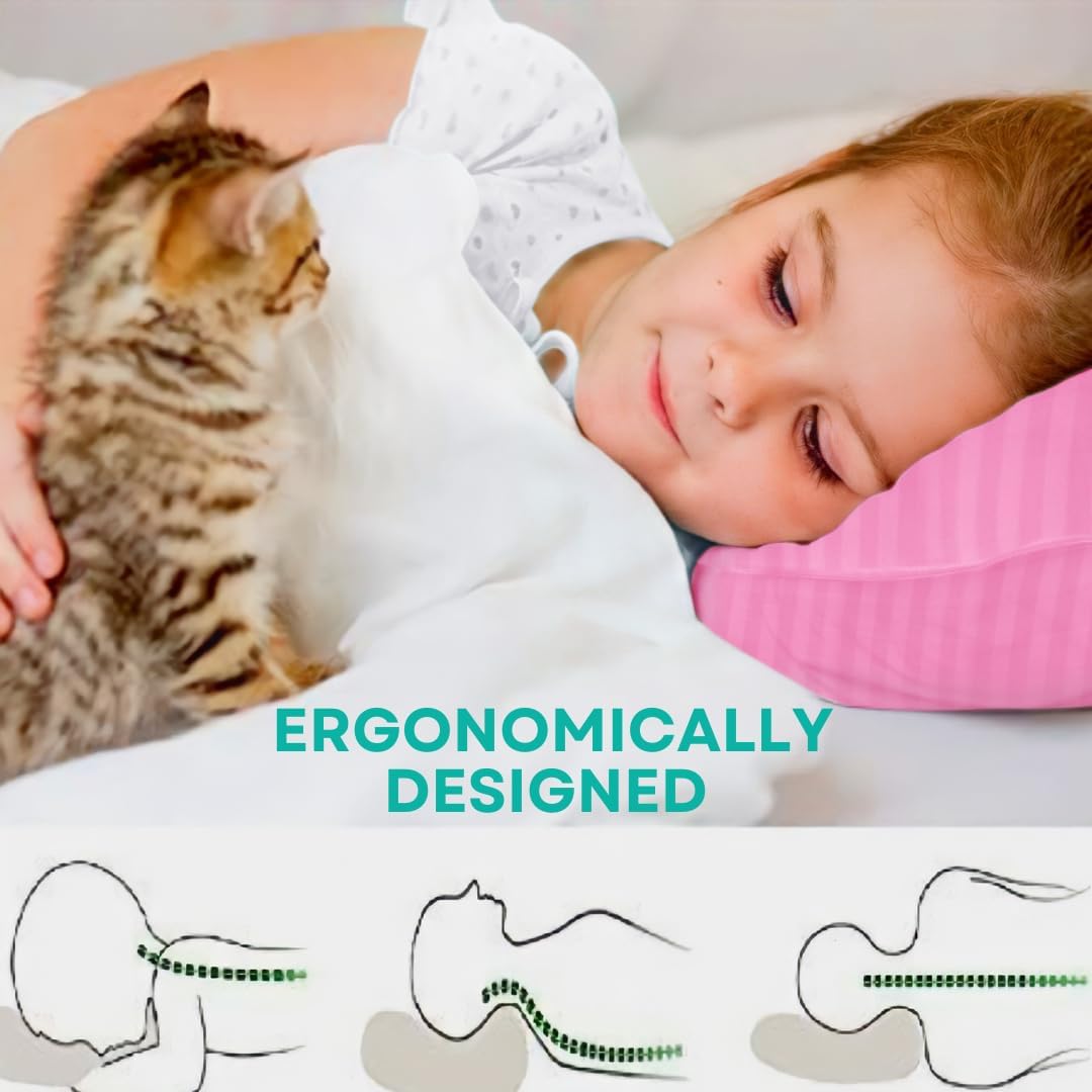 - PACK OF 2: Includes two extra small pillows with elegant sateen stripes, each measuring approximately 10x15 inches (25x38 cm). Designed with the ideal balance of softness and firmness to provide a restful sleep for children aged 2 years old and up.