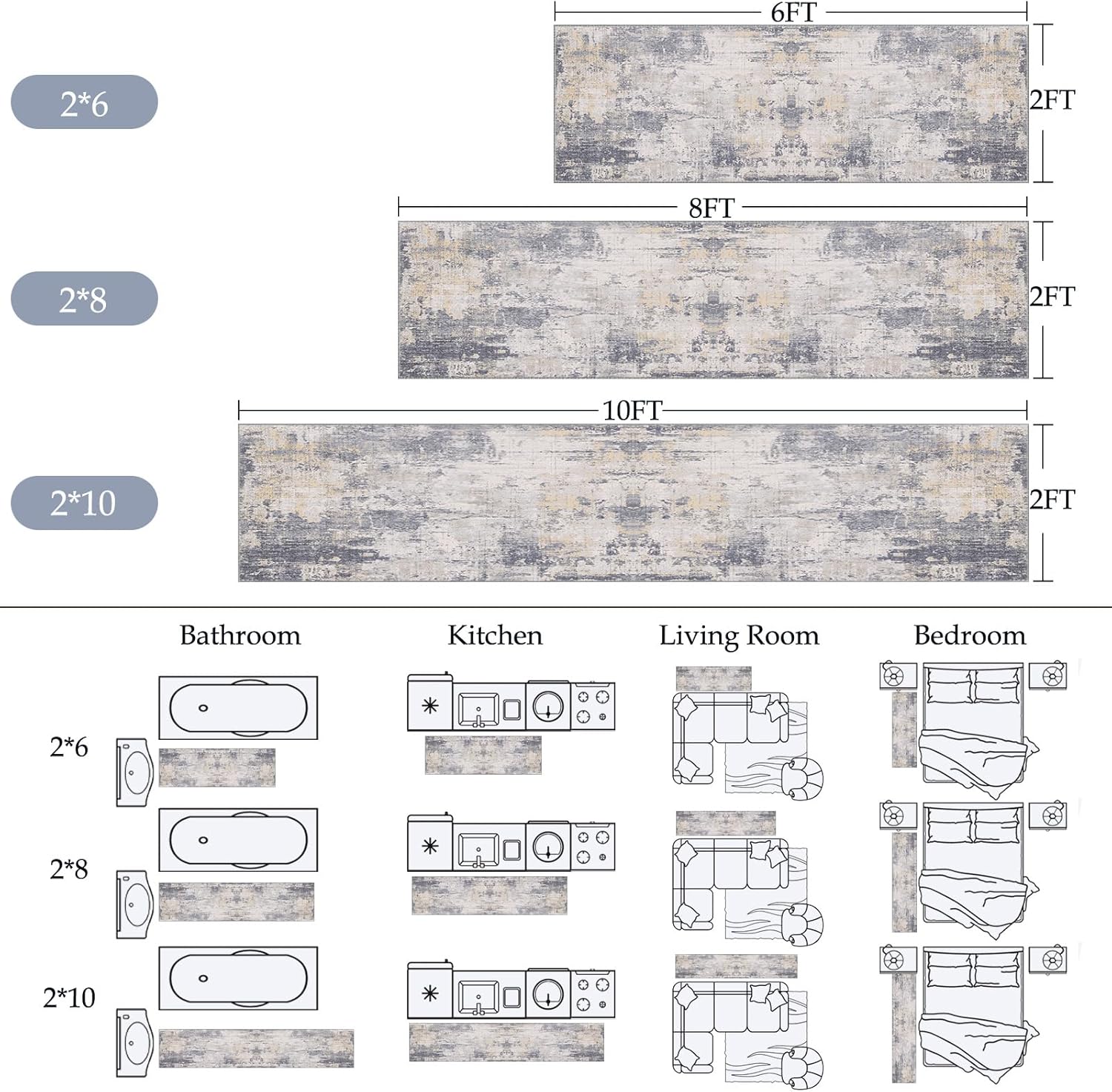 Washable Area Rugs 2'x8' Non-Slip Modern Abstract Soft for Living Room Entryway Bedroom Nursery, Print Pattern, Purple Grey Cream Yellow