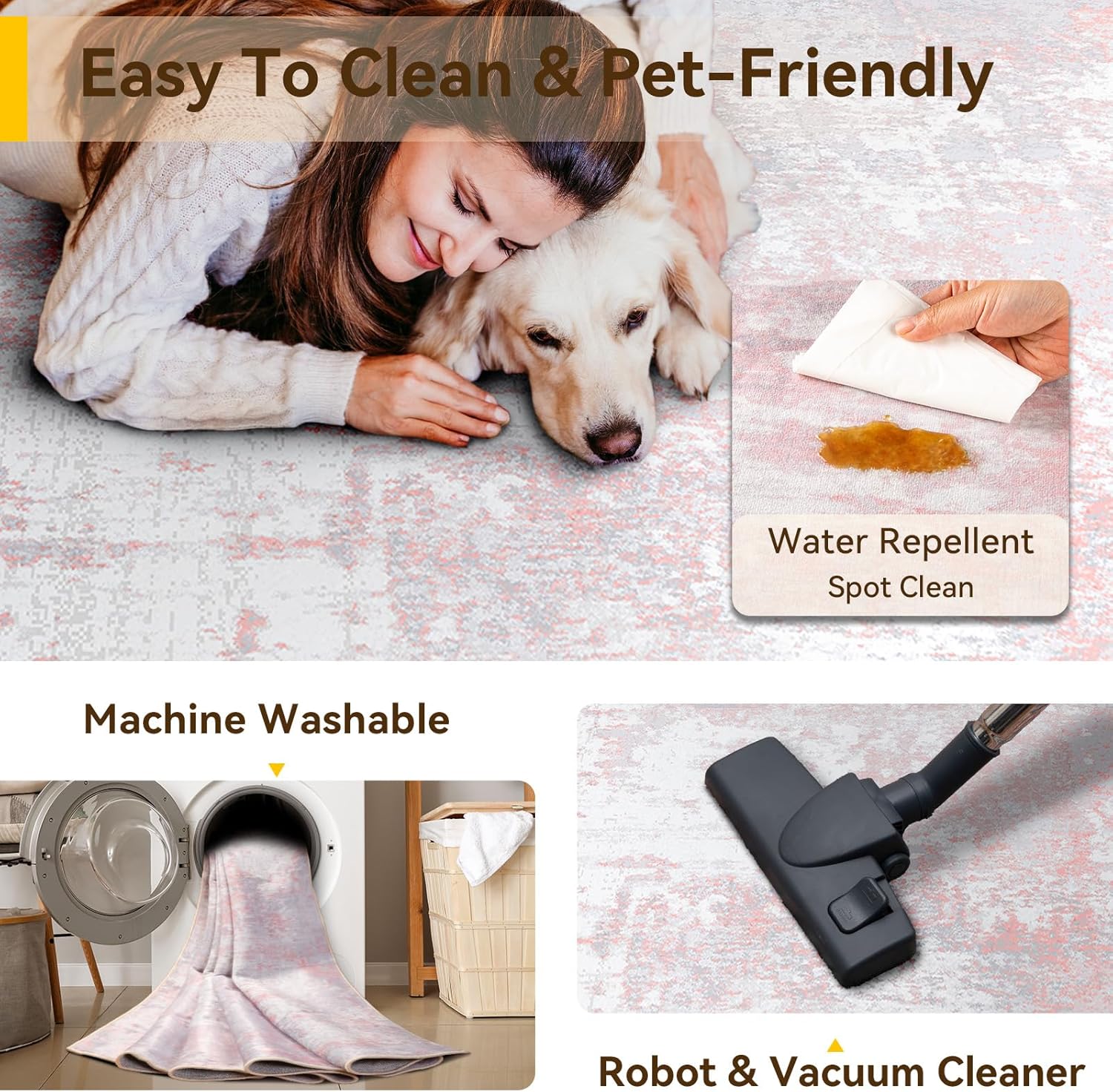 - Tides Series – Effortless style that flows with your life.This modern machine-washable non-slip rug features reinforced edges and a low-pile design that resists dirt. Its water-repellent surface makes spills easy to clean - liquids bead up for quick wiping. Simply machine wash in cold water (no bleach) to refresh. The non-slip backing keeps it securely in place. A perfect blend of function and contemporary design for active homes.