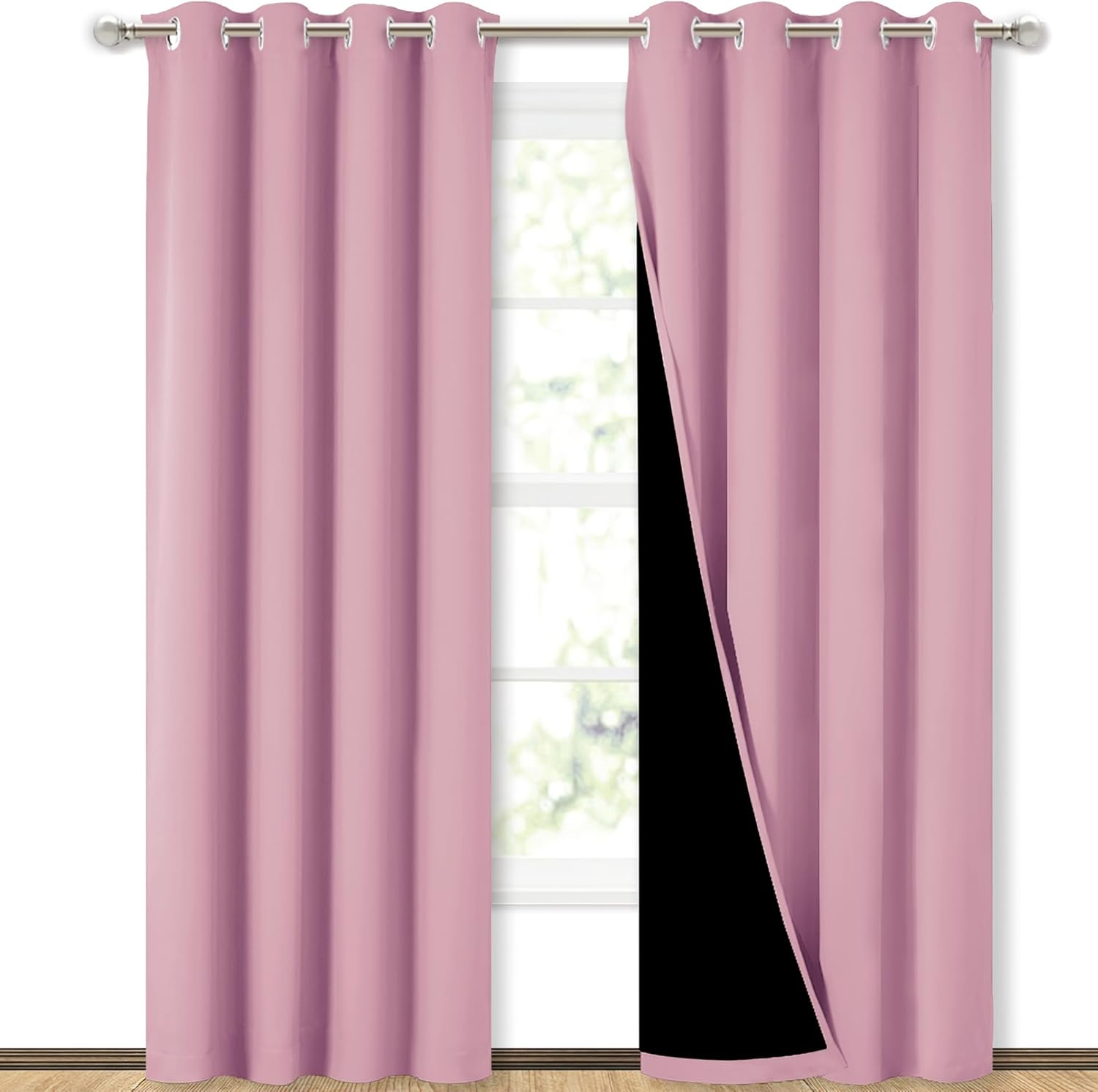 NICETOWN Crystal Pink Full Shade Curtain Panels, Pair of Energy Smart & Noise Blocking Out Blackout Drapes for Dining Room Window, Thermal Insulated Guest Room Lined Window Dressing, 52 x 84 inch