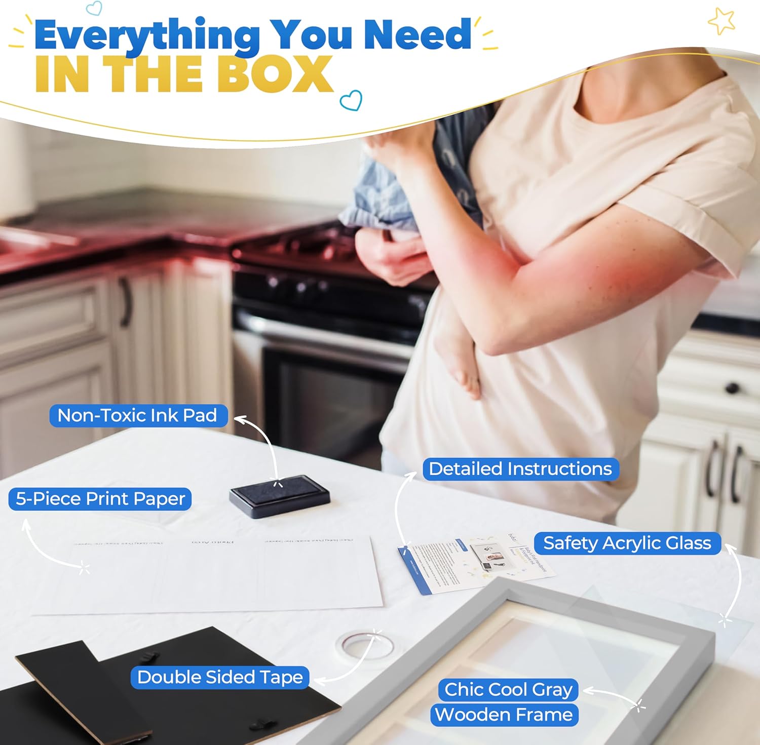- Make Lasting Memories: A baby hand print & foot print kit makes priceless first memories for a new mom & dad. Gifts for new moms after birth are often discarded over time but with a newborn picture frame you can capture memories that will last a lifetime.