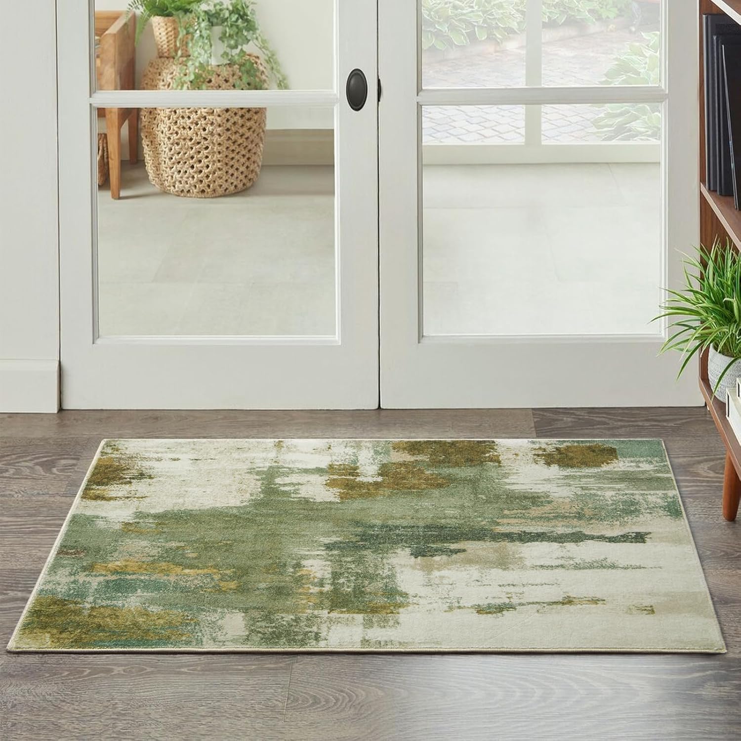 Entryway Rug 2x3 Green Rug, Washable Abstract Small Rugs Non-Slip Low Pile Throw Rugs for Kitchen Floor, Front Door, Bedroom Bedside