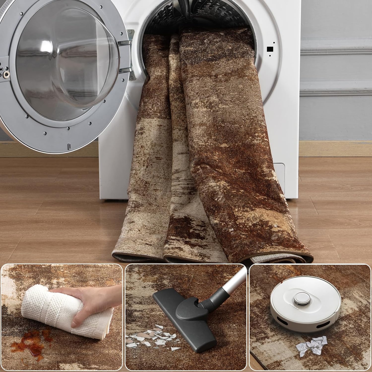 - Machine Washable Area Rugs:Modern abstract print rugs can be machine washed, vacuumed, and cleaned with a broom or rag. Keep this easily washable carpet looking fresh daily with a vacuum cleaner or a swift wipe, and the innovative one-piece machine washable rug makes cleaning your home easier