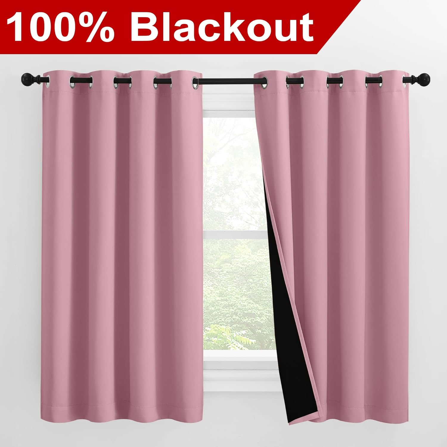 NICETOWN 100% Blackout Curtains with Black Liners, Thermal Insulated Full Blackout 2-Layer Lined Drapes, Noise Cancellation Window Draperies for Dining Room (Crystal Pink, 2 Panels, 55" W by 57" L)