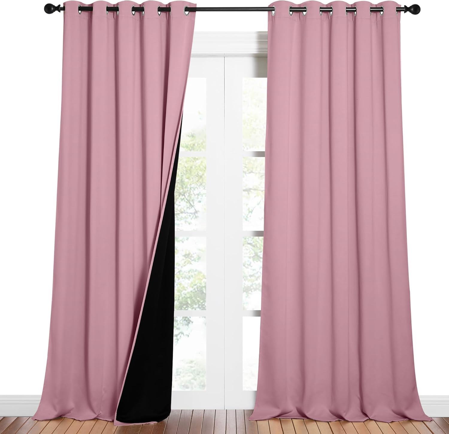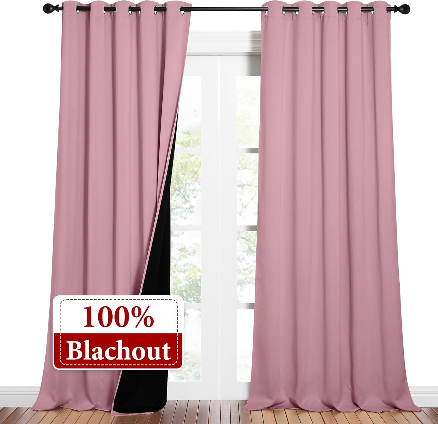 NICETOWN Total Shade Curtains and Draperies, Heavy-Duty Full Light Shading Drapes with Black Liner Backing for Villa/Hall/Dorm Window(Crystal Pink, Package of 2 Panels, 62 inches Wide x 95 inches Long