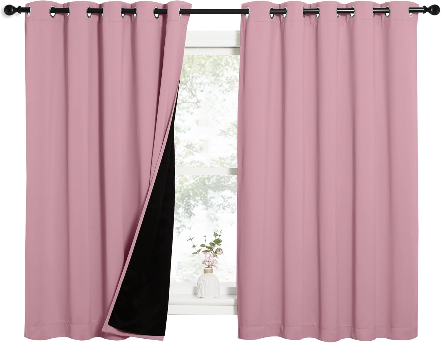 NICETOWN 100% Blackout Curtains with Black Liners, Thermal Insulated Full Blackout 2-Layer Lined Drapes, Energy Efficiency Window Draperies for Bedroom (Crystal Pink, 2 Panels, 62-inch W by 63-inch L)