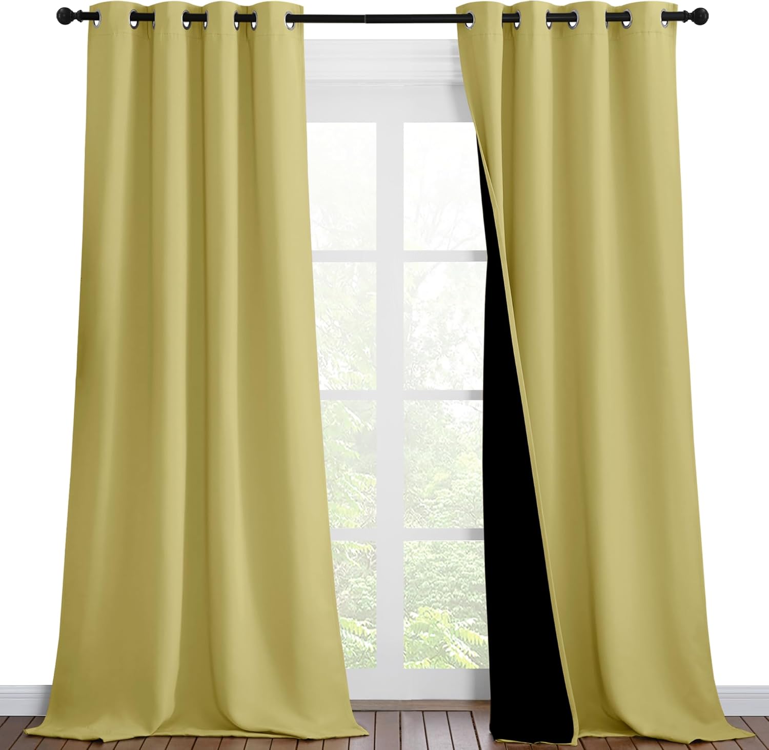 NICETOWN 100% Blackout Blinds, Set of 2, 46 inches x 96 inches, Laundry Room Decor Window Treatment Curtains for Large Patio Sliding Door, Thermal Insulated Paler Yellow Curtains for Bedroom