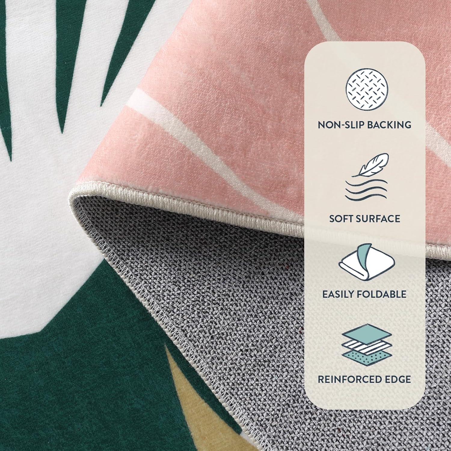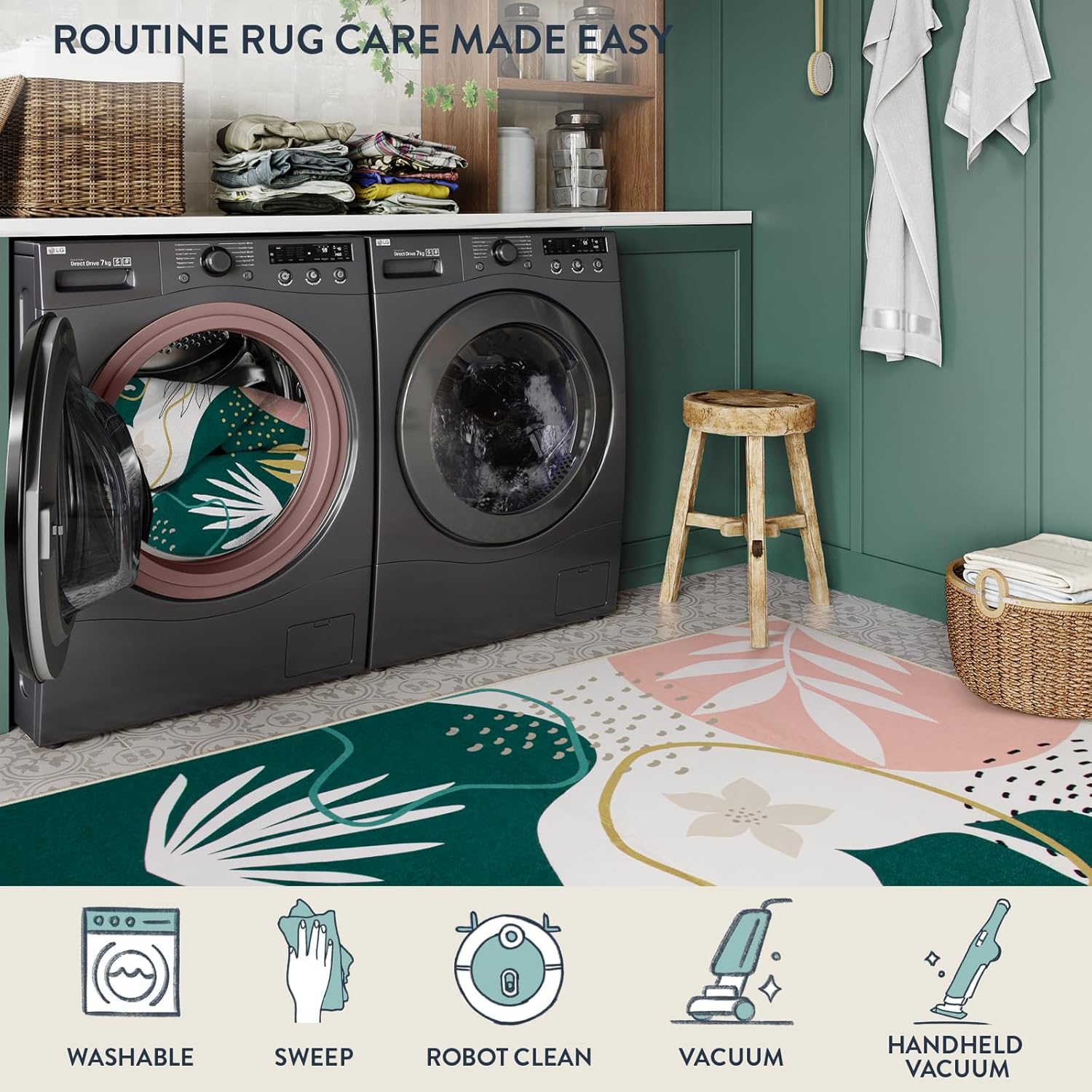 Lahome Area Rugs 4x6 Washable Soft Bedroom Rugs - Non-Slip Ultra-Thin Rugs for Entryway Stain Resistant Floor Rug, Boho Botanical Print Indoor Rug for Living Room Kitchen Office (4'x6',Green/Pink)