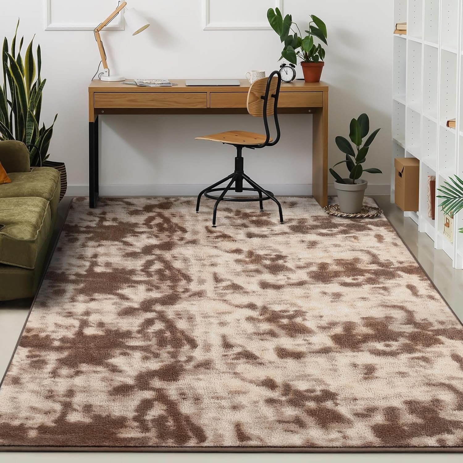 - [Modern Minimalist Home Decor]Tie-Dyed brown floor rug fits any room decoration. Minimalist style, abstract tie-dye colors and modern funky appearance bring you a cozy and luxury home experience, which is widely applicable to living room, bedroom, dorm, dinning room, office and nursery room