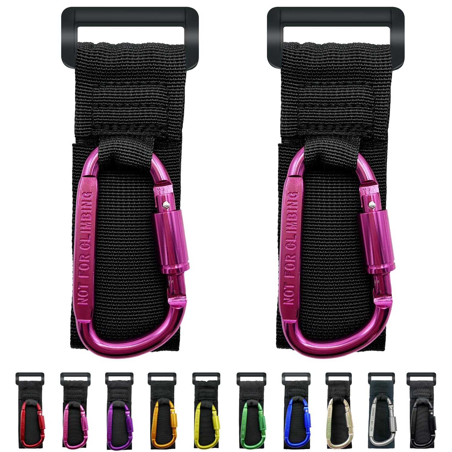 Baby Stroller Hook, Carry 30 lbs per Stroller Carabiner Clip, Adjustable Baby Stroller & Car Seat Hook for Hanging Diaper Bag, Wheelchair,Golf cart, Shopping and Pet Cart(2 Pcs Fuchsia)