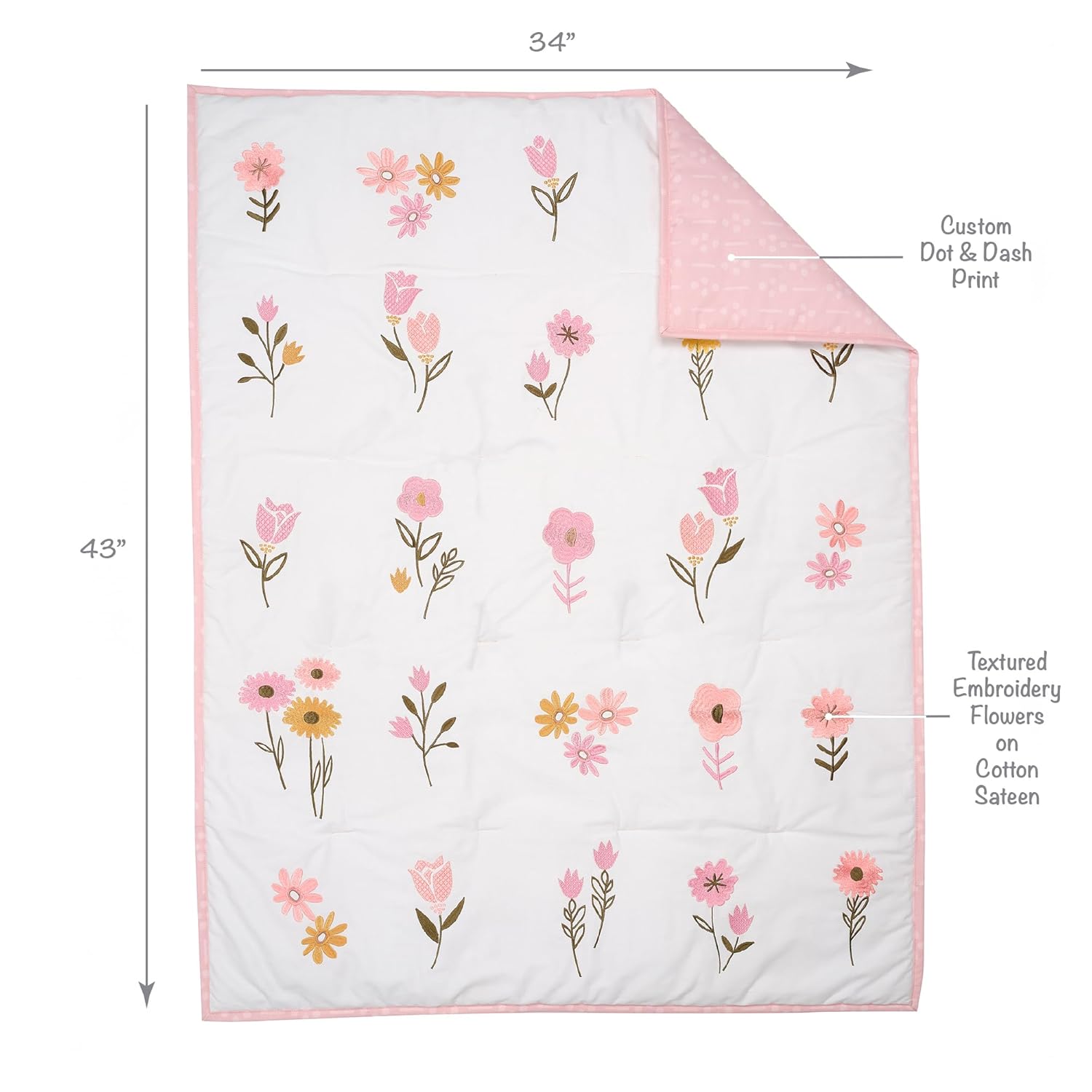 Lambs & Ivy Little Garden 3-Piece Embroidered Floral Baby Crib Bedding Set