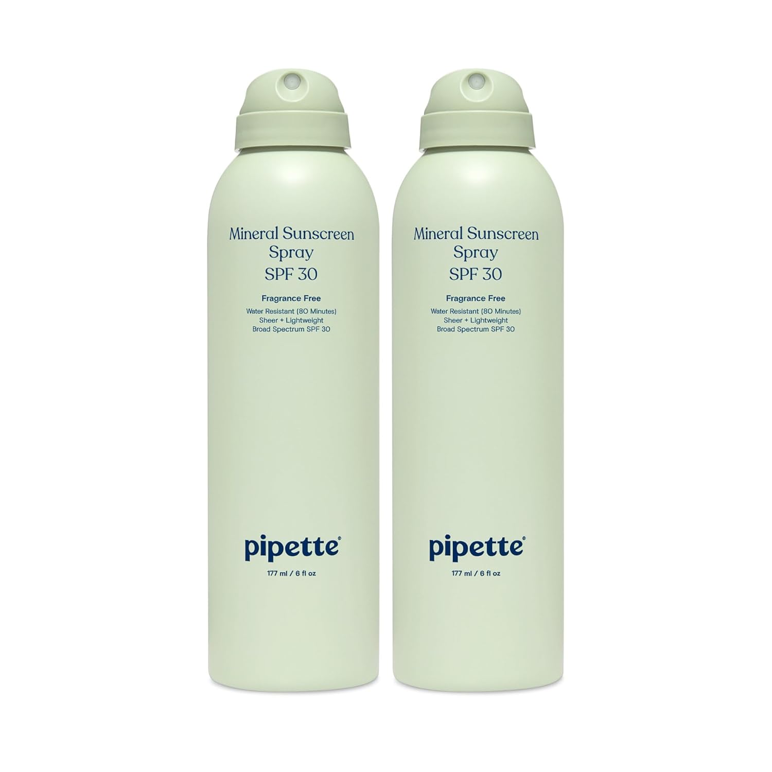 - Easy water-resistant sun care: Pipette Mineral Sunscreen Spray SPF 30 protects skin from UVA/UVB rays with 100% mineral, non-nano zinc oxide. Designed for babies and beyond, this continuous-spray, water-resistant sunblock offers quick & safe full-body coverage for playful pool days or splashing in beach waves.