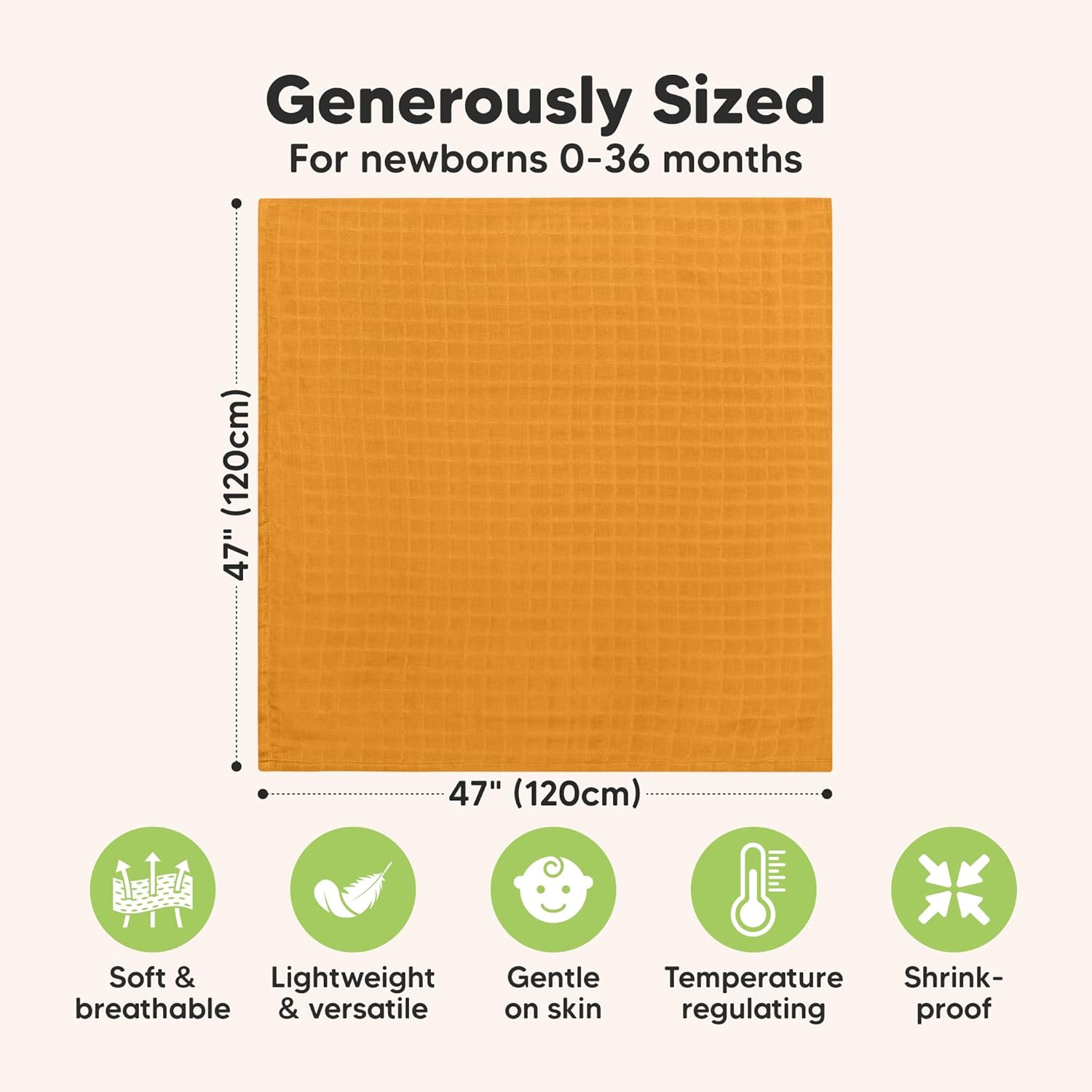 - Generously Sized - Designed large at 47" by 47", the Lumi Muslin Baby Blanket is made to grow with your baby. Suitable for premies, newborns, infants and toddlers up to age 5. The perfect lovey for home, preschool, and grandparent's place.