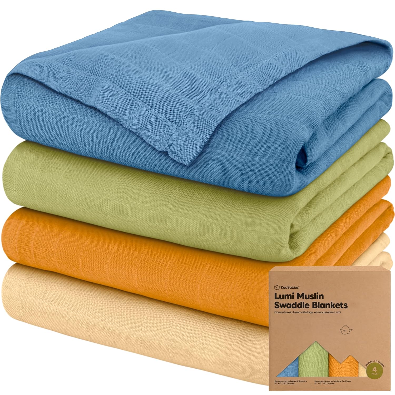 - 4-Pack Organic Muslin Receiving Blankets - The KeaBabies Lumi Muslin Swaddle Blankets are made with LumiSoft muslin, a proprietary viscose derived from bamboo and cotton blend, which is gentle on baby's skin.