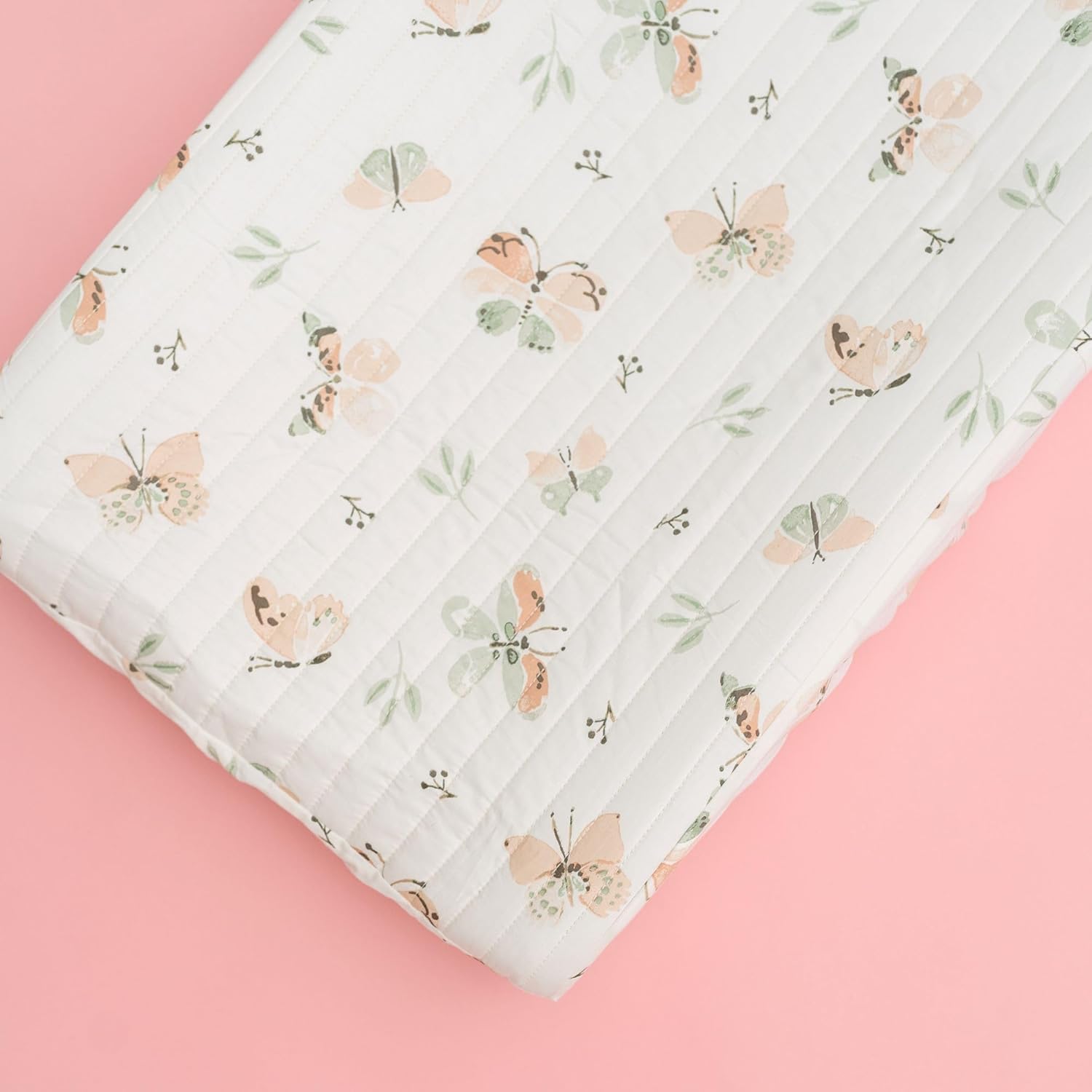 - CHIC DESIGN: Elevate your nursery's style with our chic butterfly designed changing table cover. This changing table pad enhances the overall aesthetic of your baby's room, perfectly suited for any boho nursery decor.