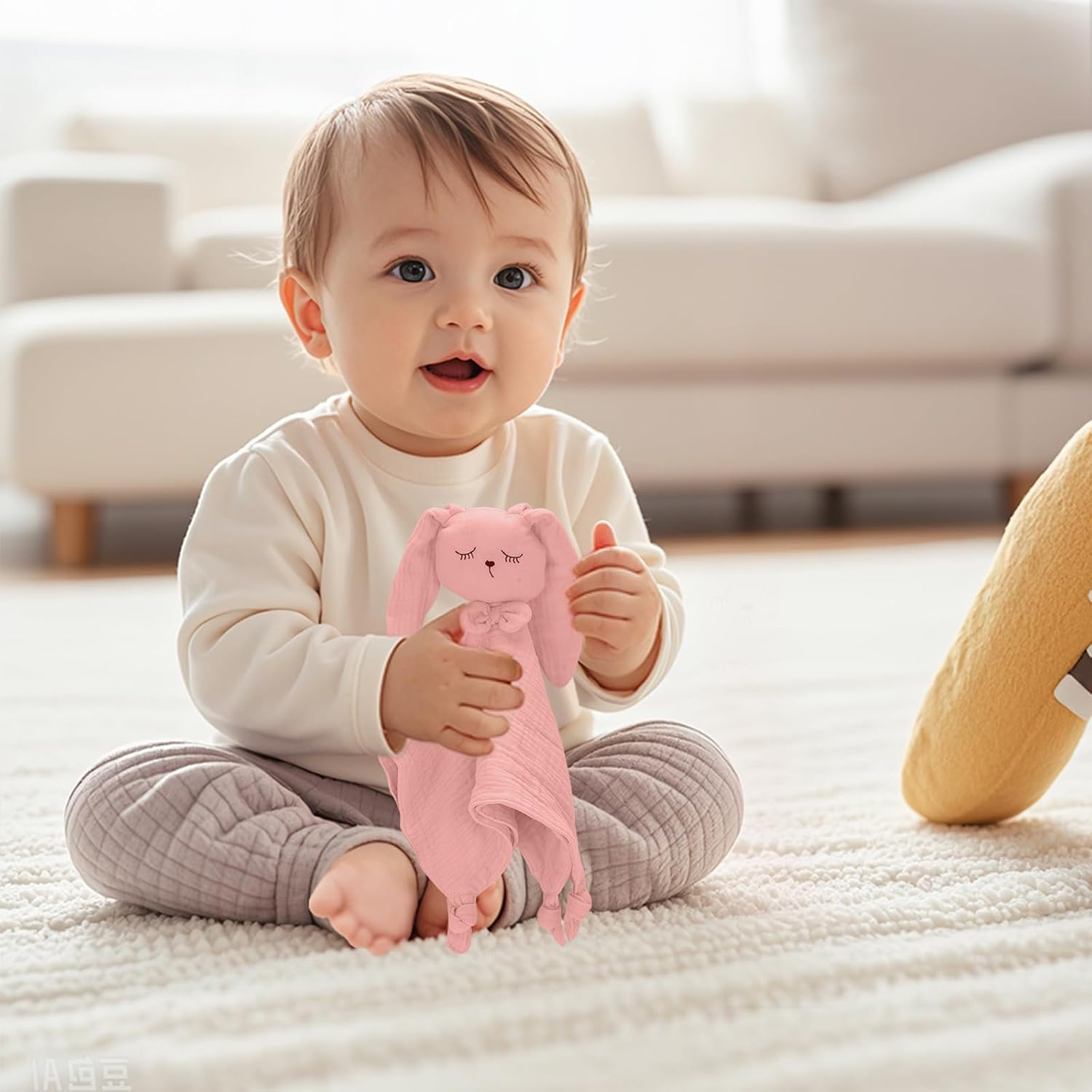 Easter Basket Stuffers, Organic Cotton Muslin Bunny Loveys for Babies Baby Security Blanket Baby Snuggle Toy Newborn Essentials Must Haves(Rabbit-Pink)