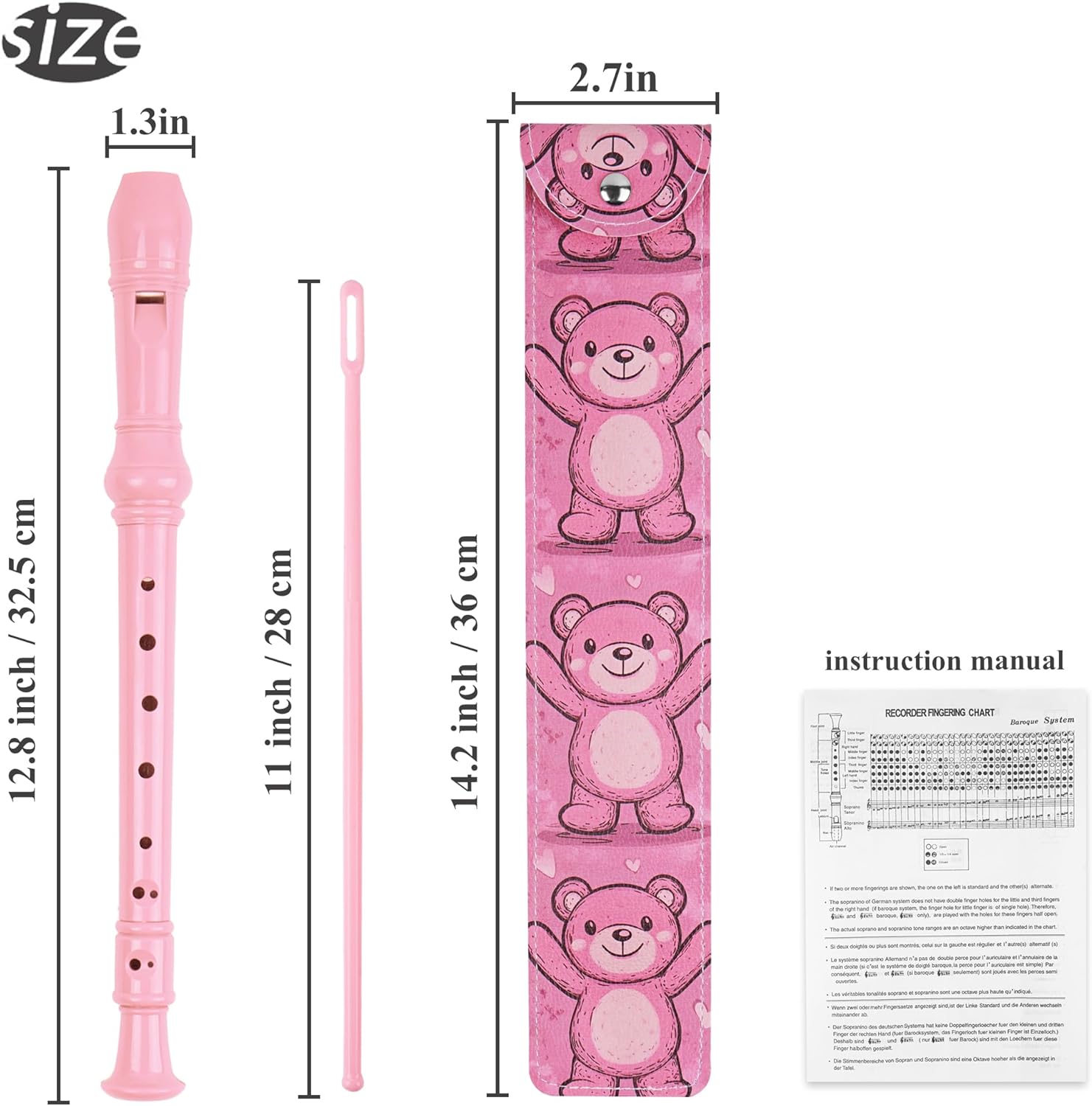 Recorder Instrument for Beginner Kids Adults,8-Hole Soprano Descant Recorder Music Flute with with Cleaning Rod & Leather Case For School Student Home Entertainment(2-Bear)