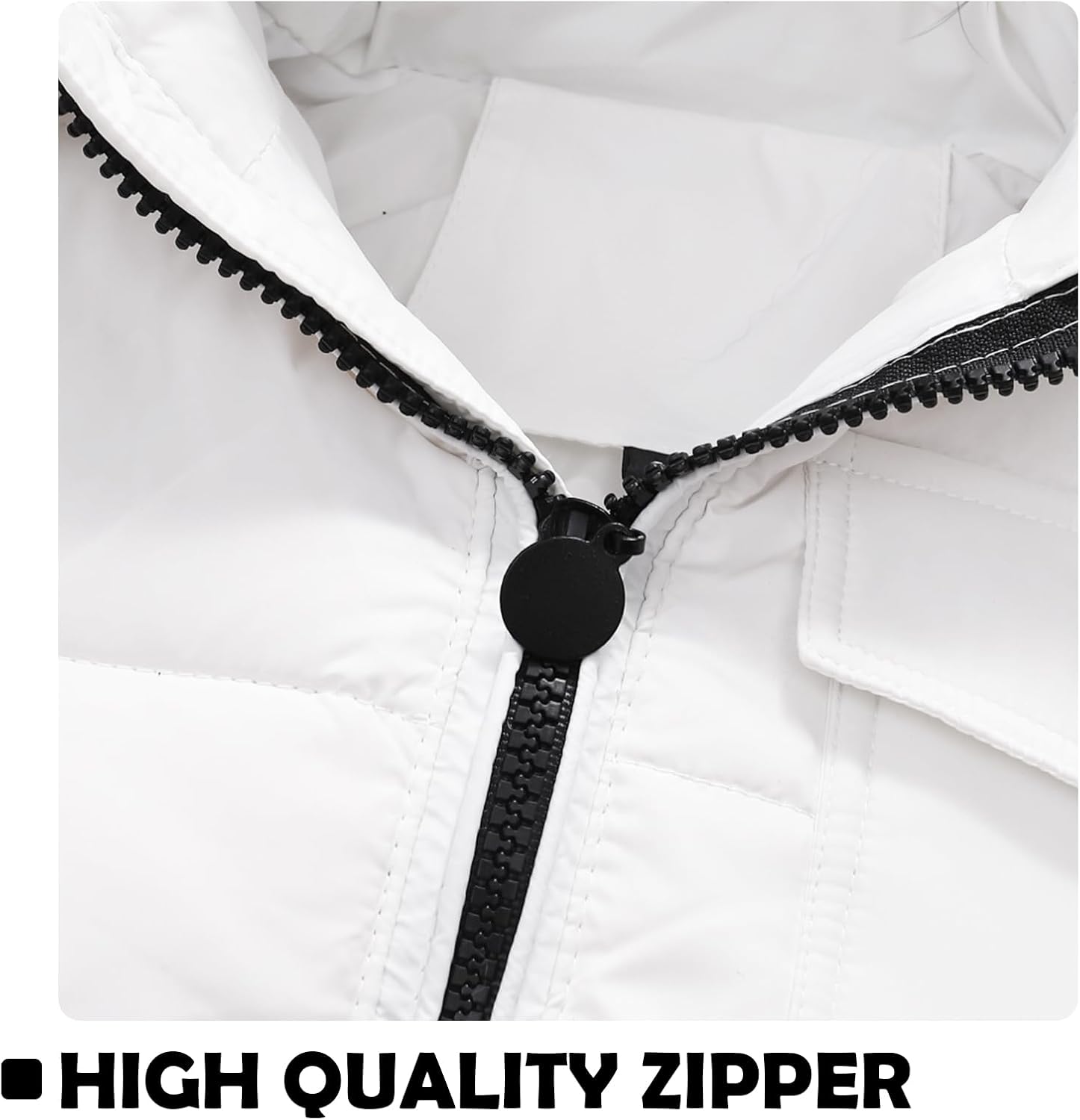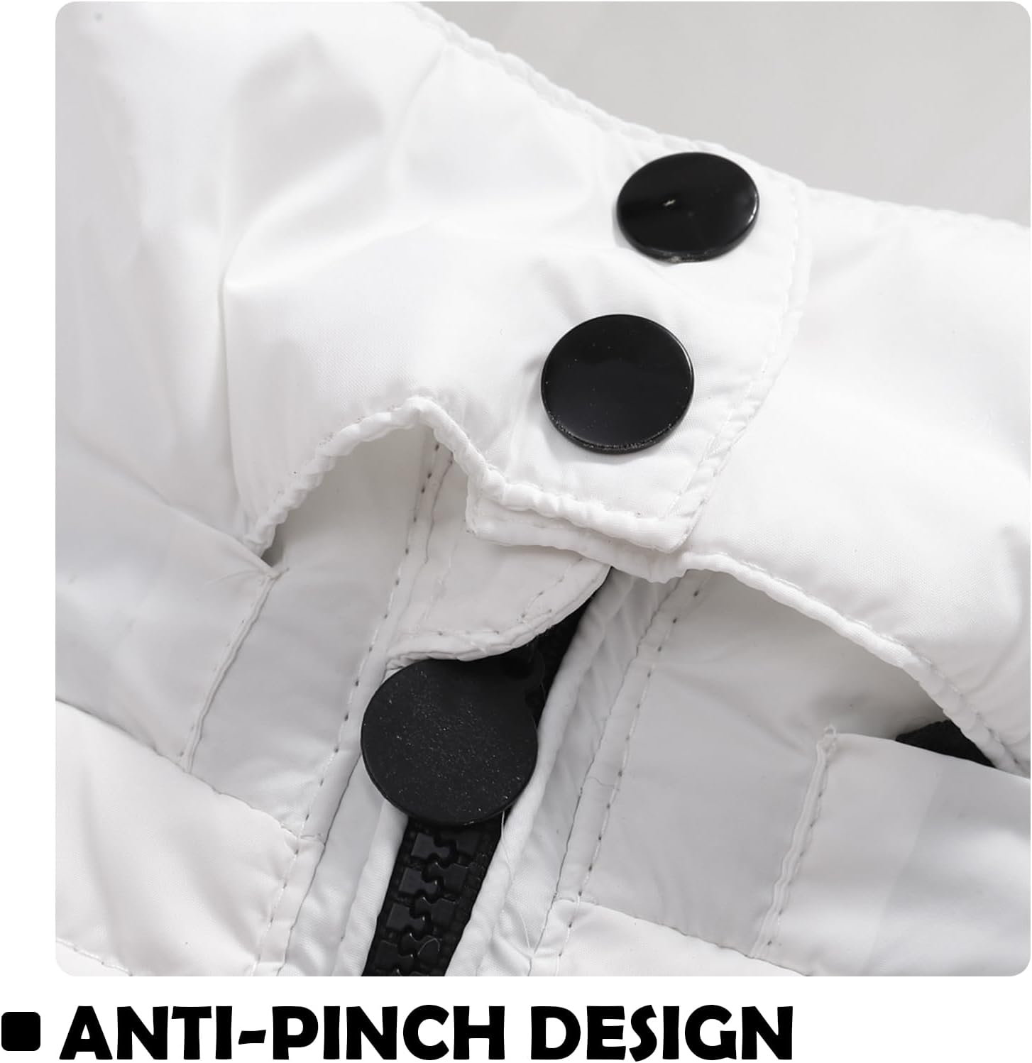 - High quality material: Toddler snow suit bib coat is made of ultra-soft white duck down padding, and the premium polyester fiber lining protects the baby's delicate skin and acts as a slight waterproof (but do not wear it out in heavy rain).
