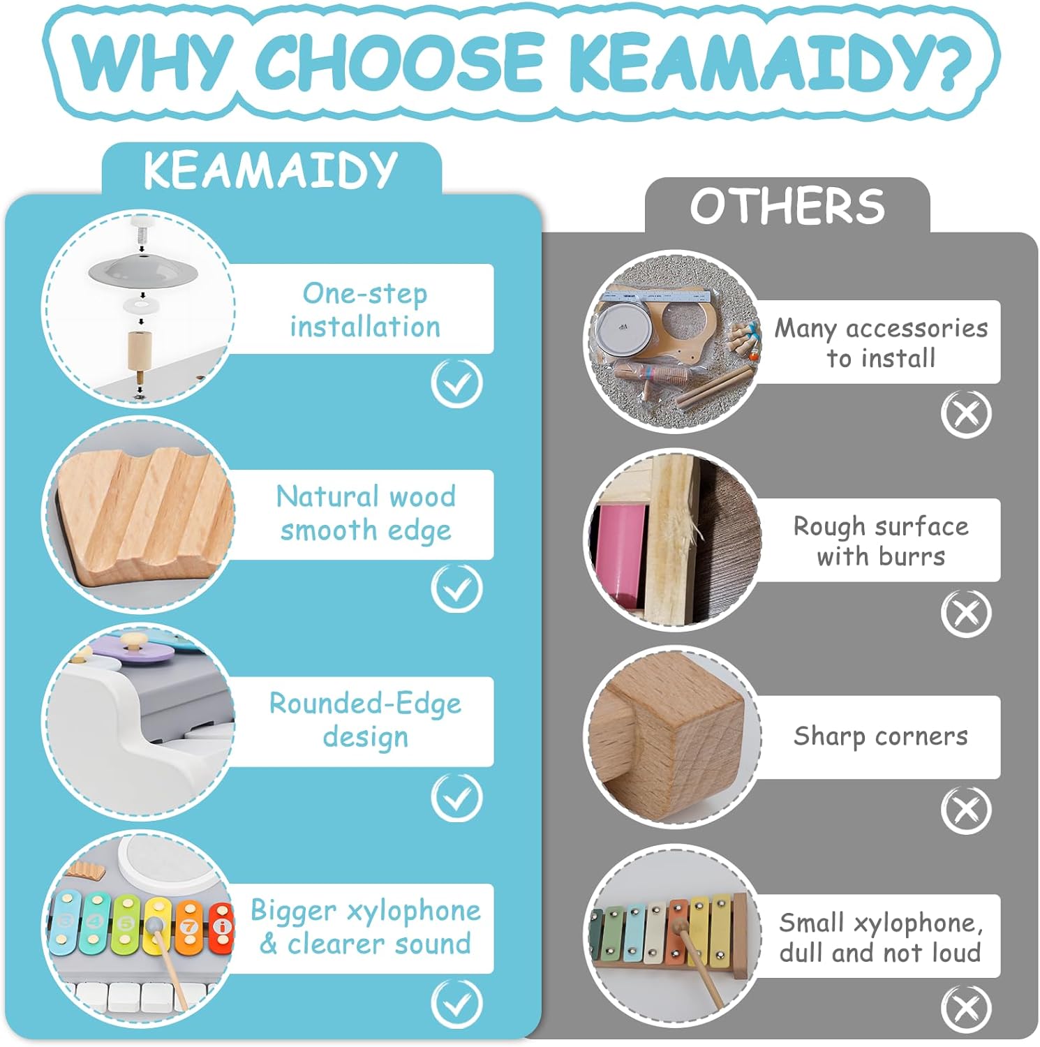 - Natural Wood & Smooth Surfaces: Our musical instruments are made from eco-friendly, smooth and splinter-free surface wood, and have passed CPC certifications. Provide a safe and comfortable space for kids to explore music.