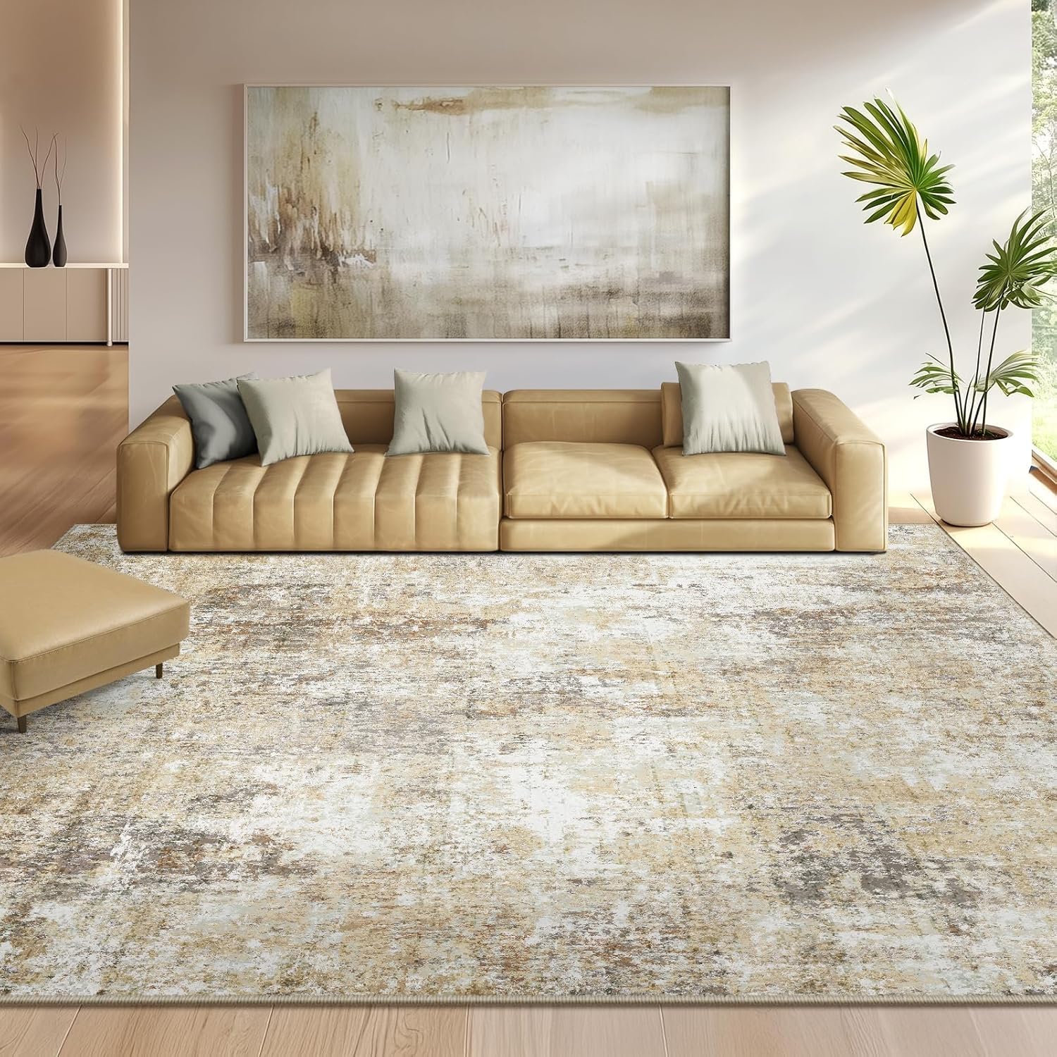 Washable Area Rugs 5'x7' Non-Slip Modern Abstract Soft for Living Room Entryway Bedroom Nursery, Print Pattern, Neutral Brown Gray