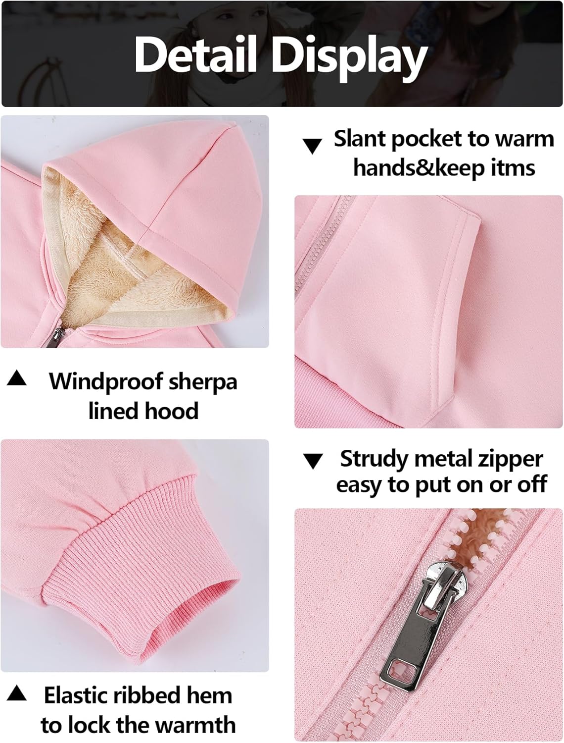 • Size: This sherpa lined girls hoodie is easy to wash, can be machine and hand washed (please do not bleach). Please refer to the SIZE CHART of this youth fleece jacket kids to choose your child's size.