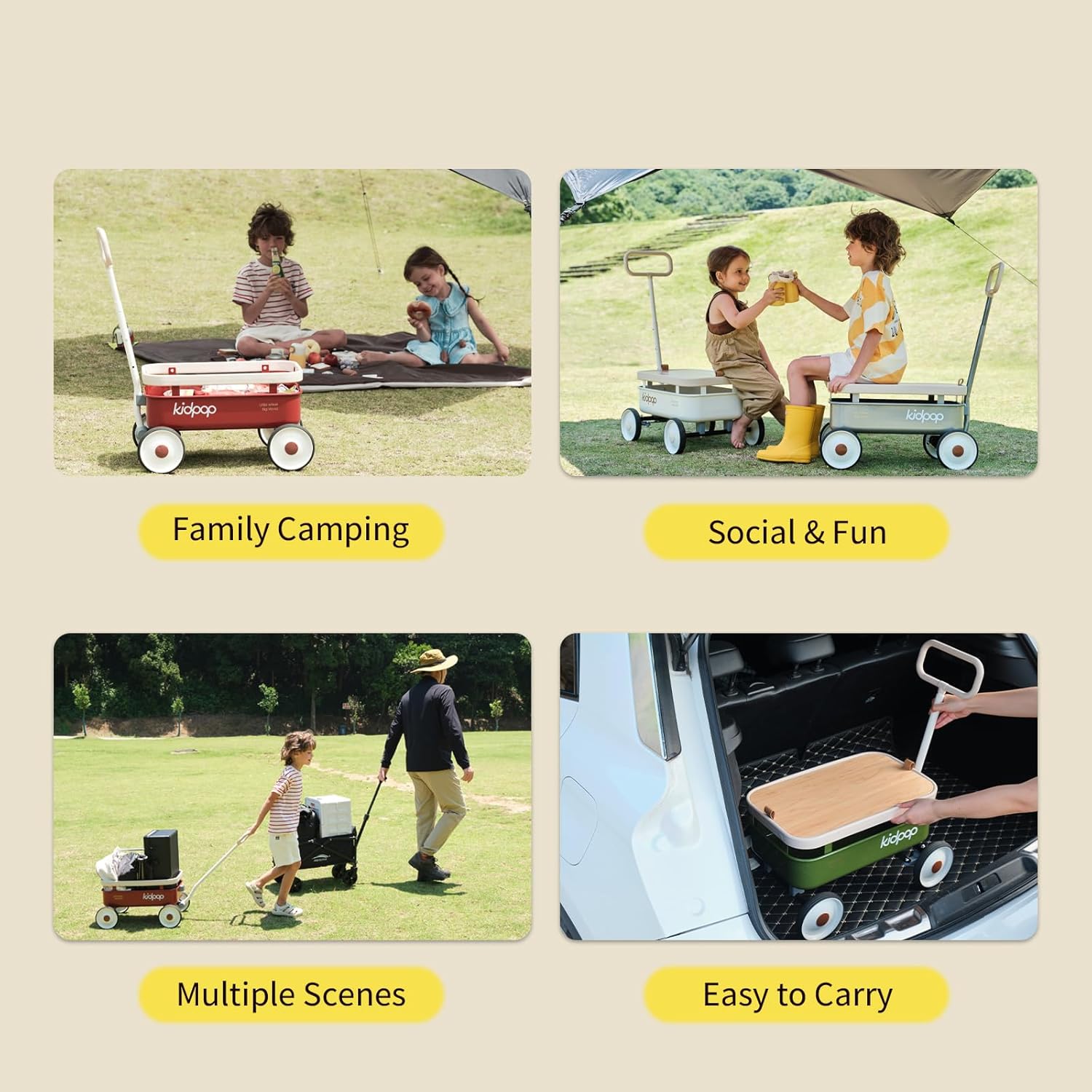 kidpop PULA-Wild 3-in-1 Kids' Pull-Along Wagon Toddlers Push Walker for 2.5-8, Removable Wooden Cover and Adjustable Handlebar, Birthday Gifts Max Weight 33 lbs (Red)