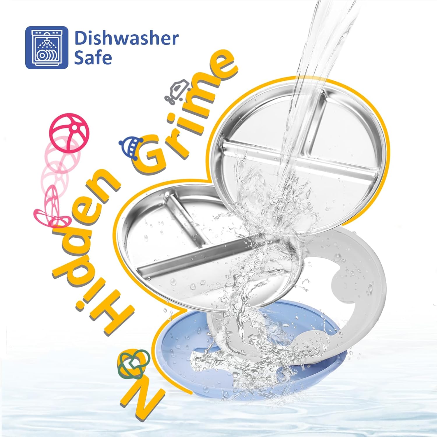 - Hassle-Free Cleaning: Resistant to food stains like carrots, the smooth stainless steel surface is easy to clean. Both the toddler plate and silicone suction sleeve are dishwasher-safe, making cleanup quick and stress-free for busy parents
