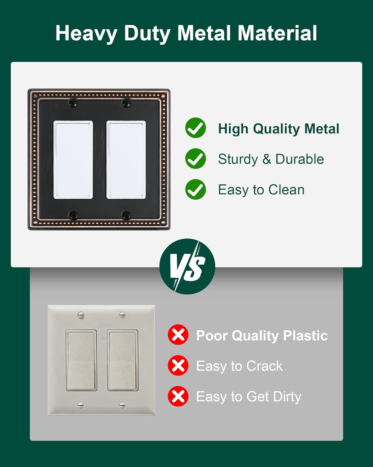 - Timelessly Elegant - The double decorator outlet covers feature an exquisite aged bronze finish with a traditionally styled beaded border. Offering a functional yet elegant enhancement to your home decor. Stylish wallplate effortlessly blends practicality with a refined decorative accent and sophisticated charm.
