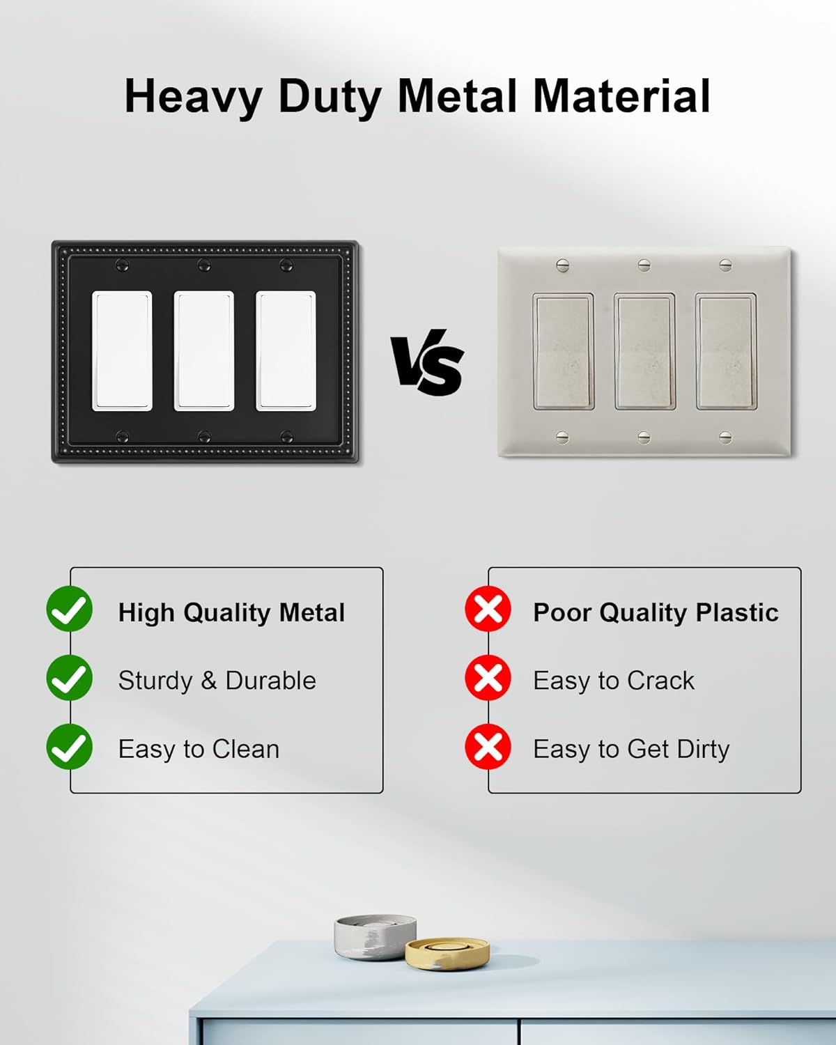 - Durable Metal Construction - Built to last, constructed from thick and sturdy metal, this wall plate cover ensures long-lasting durability and sturdiness, allows for easy cleanup and resistant to tarnishing and corrosion, not easy to break. Ensuring it remains a stunning addition to your home for years to come.