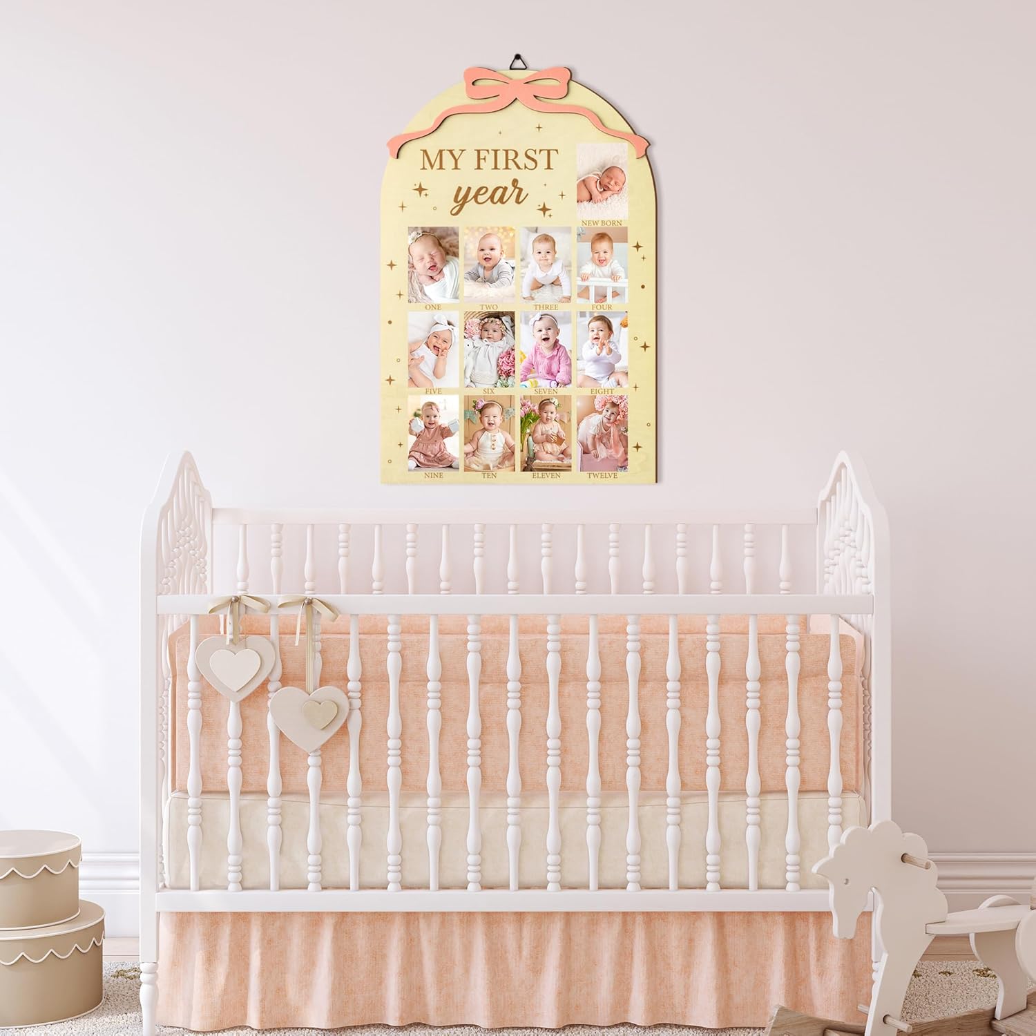 - Thoughtful Gift: Present the new parents with this charming newborn photo wooden board—a perfect gift for a baby shower, a baby's first birthday, or any special occasion including Christmas. Make memories of baby’s first year and cherish them for a lifetime with this unique baby keepsake.