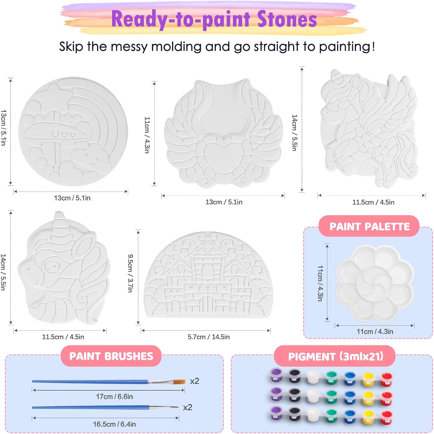- Ready-to-Paint Garden Stone:Skip the messy molding and jump into a world of creative fun as you paint your own stepping stones.Diy arts and crafts kits comes with 5 pack stepping stones of different shapes(Flower;Butterfl;Turtle;Tree;Ladybug),3 sets of paints strips;1 mixing color pads; 4 paintbrushes