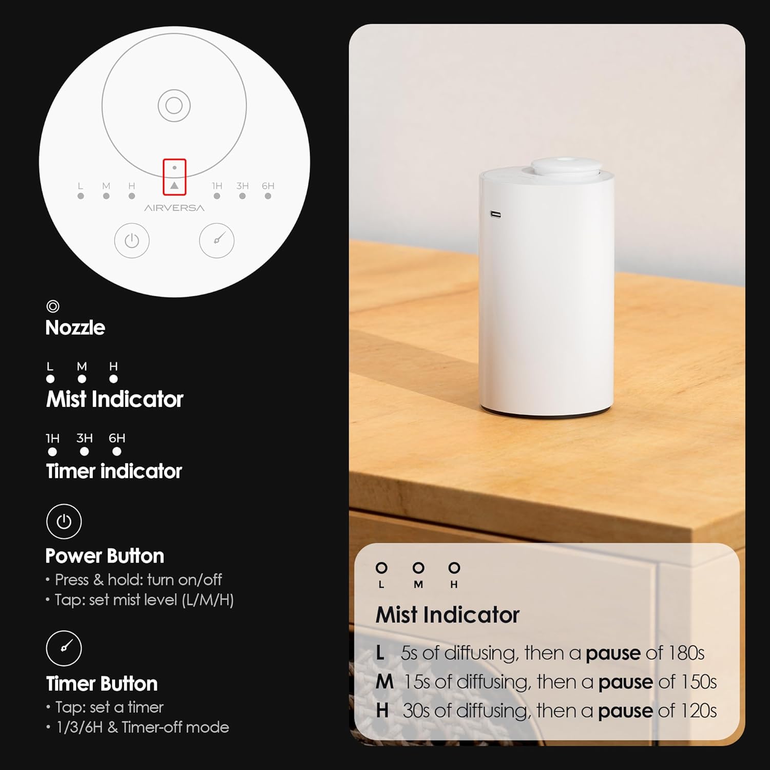 Waterless Diffuser for Essential Oil, Battery Operated Nebulizer, 0.7Fl.Oz./ 20mL Capacity, Mini Scent Air Machine, 3 Countdown Timers & 3 Mist Levels for Home, Room, Car, Office, AN6 Light Steel Blue