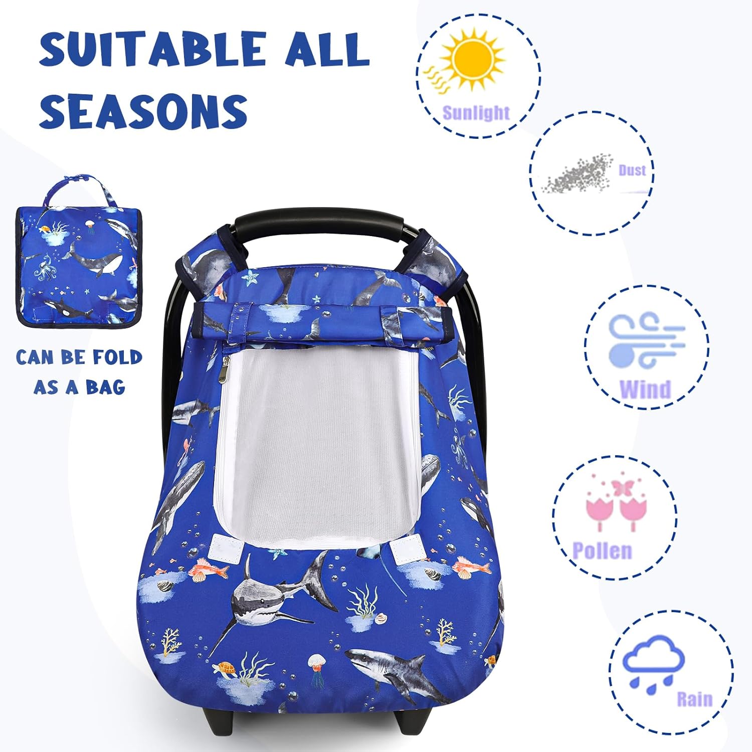 Pea Pod Car Seat Cover Baby, Infant Car Seat Canopy Covers for Newborn with 2 Layers Windows of Breathable Mesh Fabric, Lightweight Polyester/Soft Minky Dot Backing (Ocean)