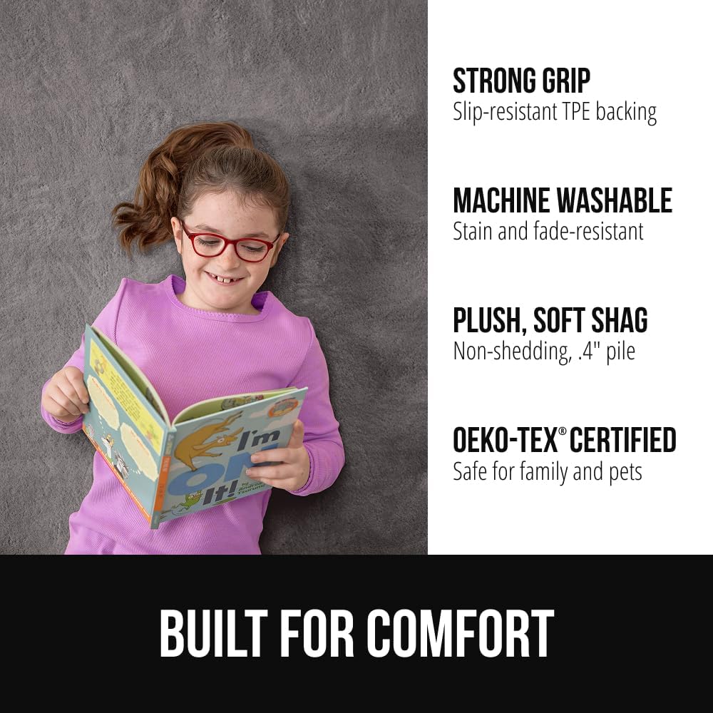 GORILLA GRIP Ultra Soft Washable Area Rug, Stain and Slip Resistant Plush Thick Carpet for Bedroom Living Room, No Shed Floor Rugs, Pet Friendly, Dorm Essentials, Kids Nursery Home Decor, 4x6, Gray