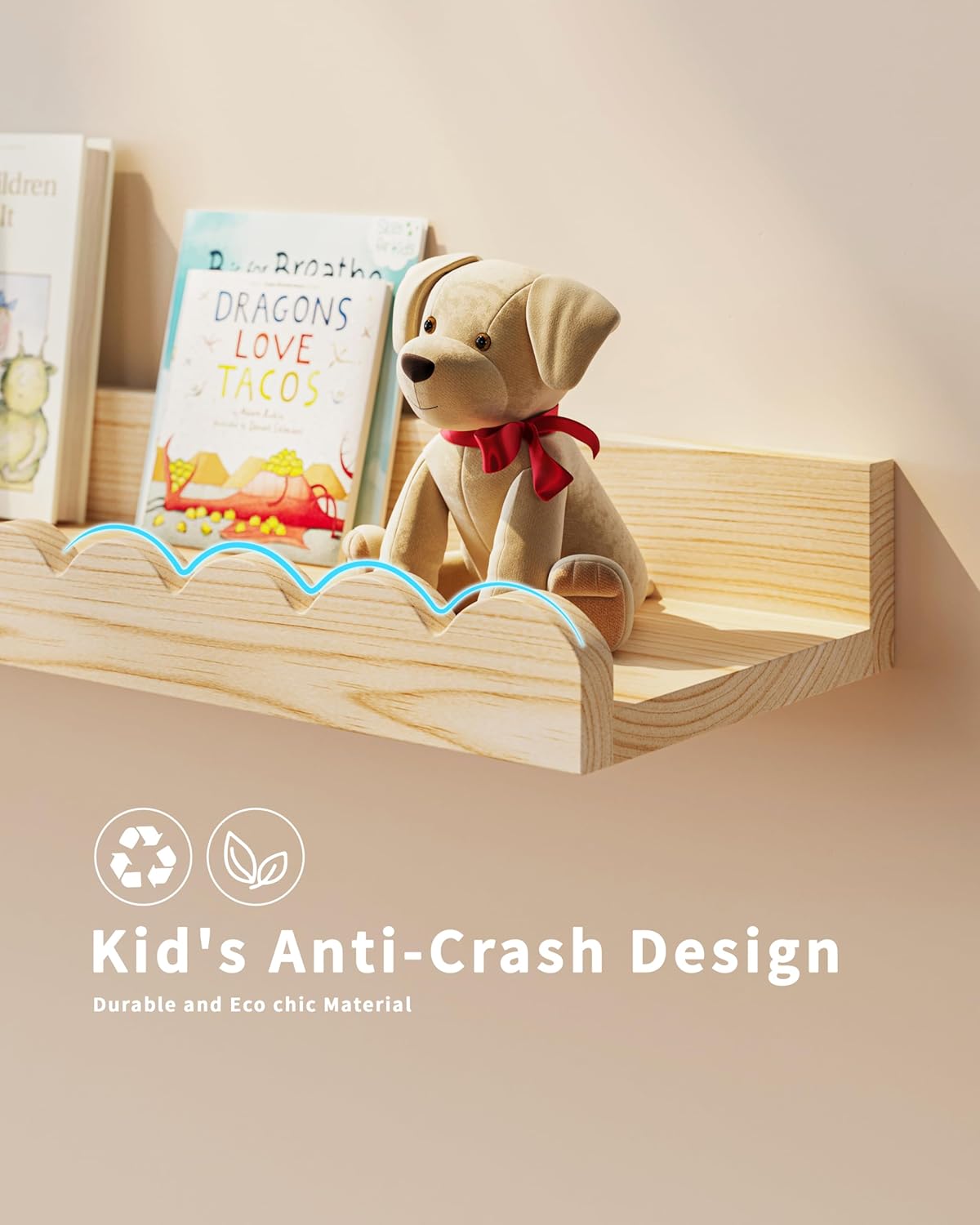 - High-Quality Wood: Crafted from premium hardwood, our wall-mounted bookshelf ensures durability and a long-lasting finish, making it a reliable addition to any child's room