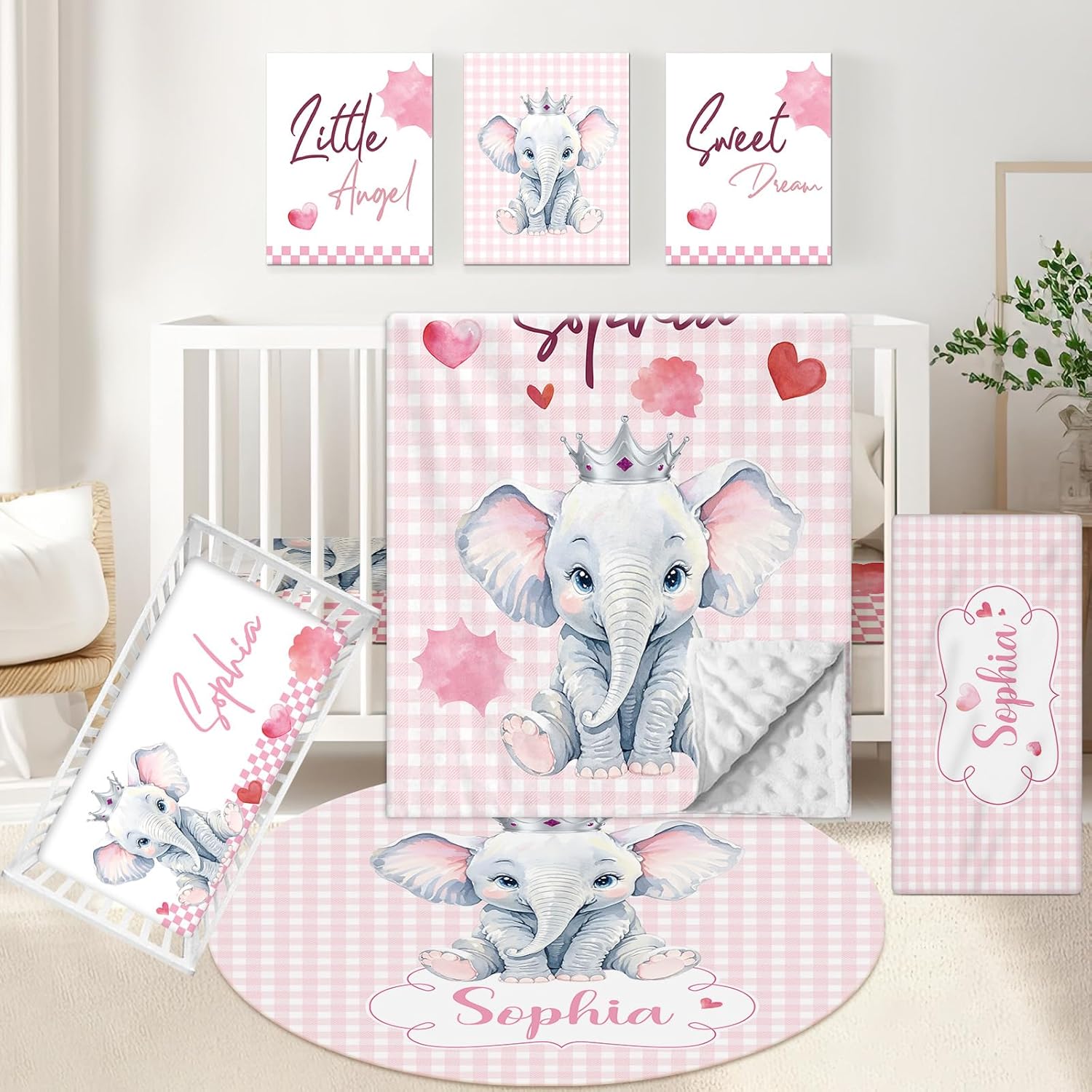 Personalized Baby Crib Set, 5 Pcs Custom with Name, Soft Elephant Crib Bedding, Double Layer Toddler Infant Bedding, New Parents Gifts