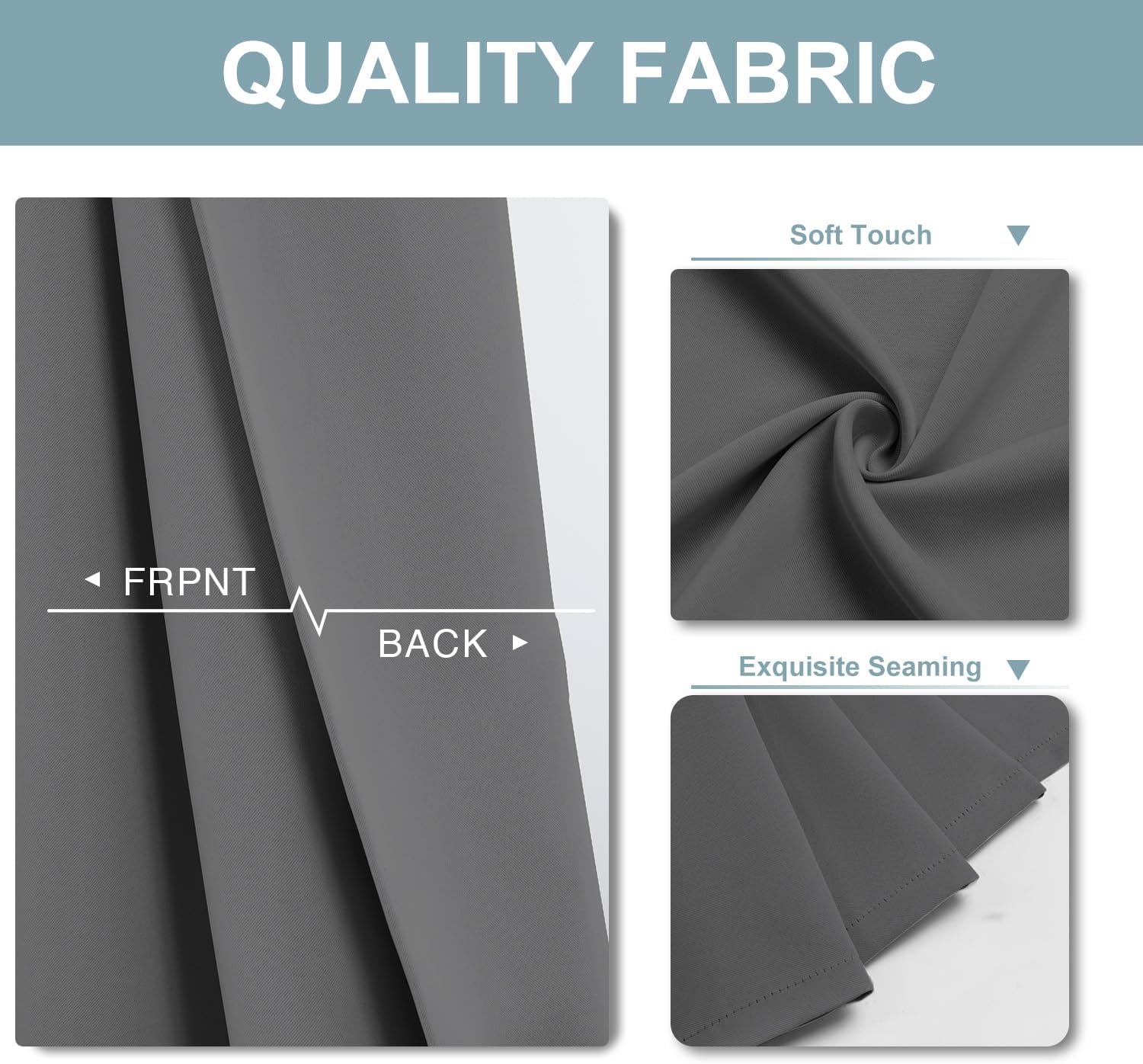 - QUALITY FABRIC: These thick living room curtains work well in noise reducing and privacy protection. Same solid color on both sides. The material feels soft with no chemical smell, safe for kids room and nursery room.