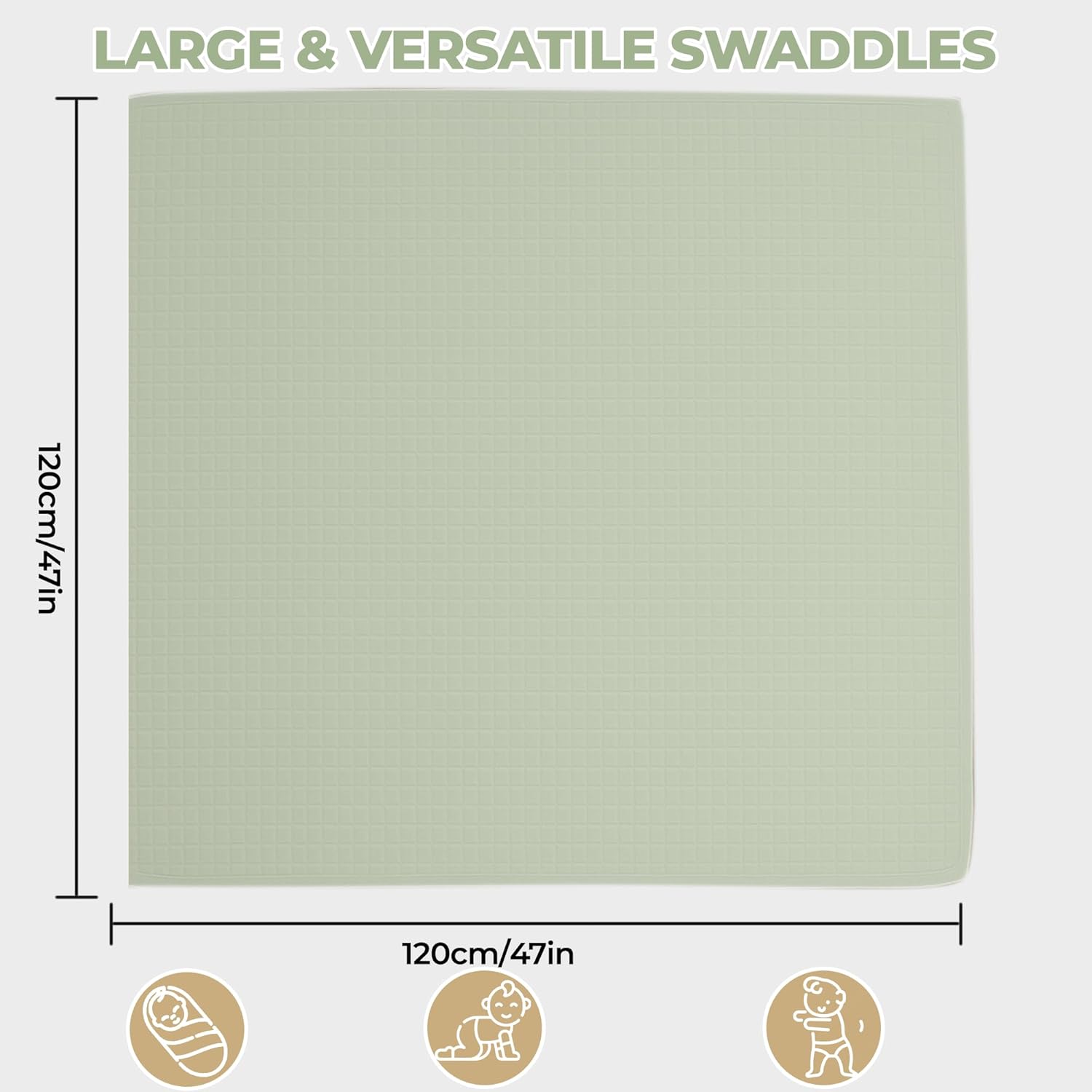 - PERFECT GENEROUS SIZE : 47x47 inches ; We’ve designed it with your needs in mind : large enough to grow with your baby, with ample space for wrapping and swaddling perfectly every time. Lightweight and easy to carry, it’s ideal for bringing to the hospital to welcome your little one and perfect for capturing those first precious moments in photos. Rest assured, this blanket will support you and your baby every step of the way.