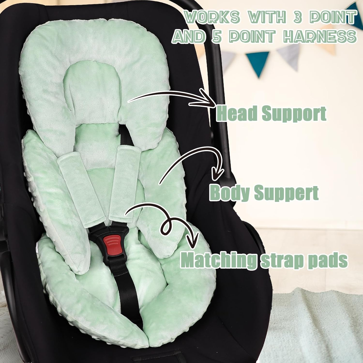 - Versatility and Functionality: This padded fabric insert is designed for use in car seats with 3 or 5-point harness systems and is also suitable for some swings, pushchairs, rocking chairs and so on