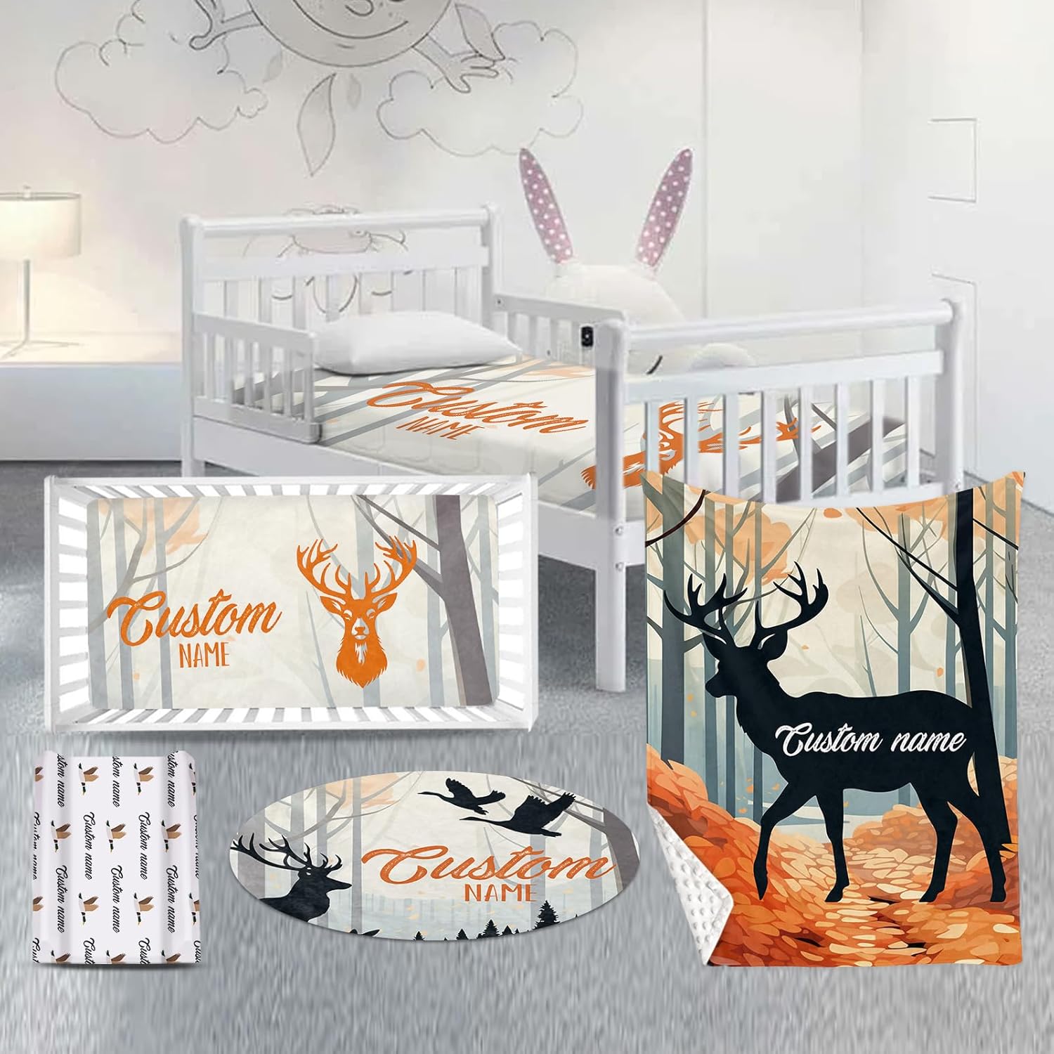 Custom Nursery Crib Bedding Set: Personalized Name 4 Piece Orange Sika Deer Design Baby Crib Sets for Baby Girls - Toddler Double Layer Blanket Set, Comfortable Crib Bed Sheets for Baby Toddlers
