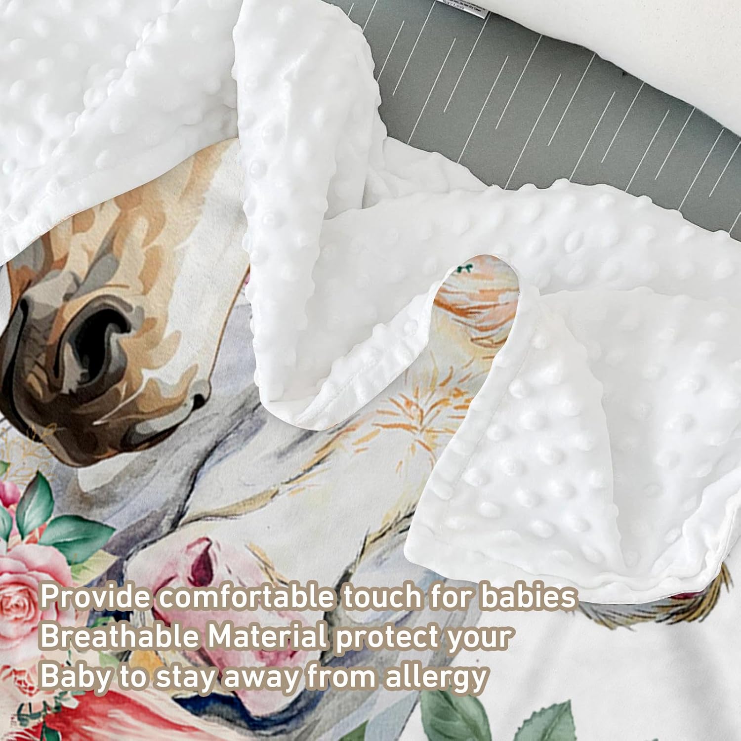 Custom Name Crib Bedding Set - Horse & Cow Pattern, Personalized Floral Nursery Bedding 3-Piece Set– Soft Blanket, Fitted Sheet, Changing Pad Cover – for Newborns Girls Nursery Gifts